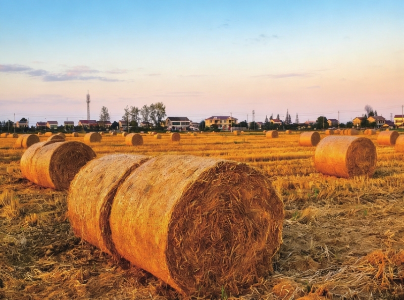 沙头镇田间捆好的秸秆。 寻雯摄