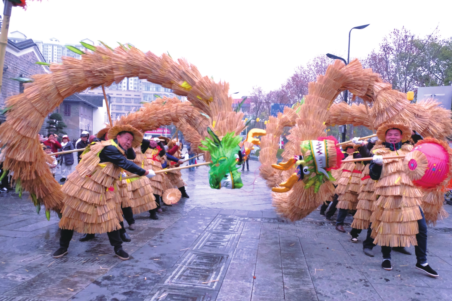 稻草龙在明清古巷巡游迎新年。陈徐文倩摄