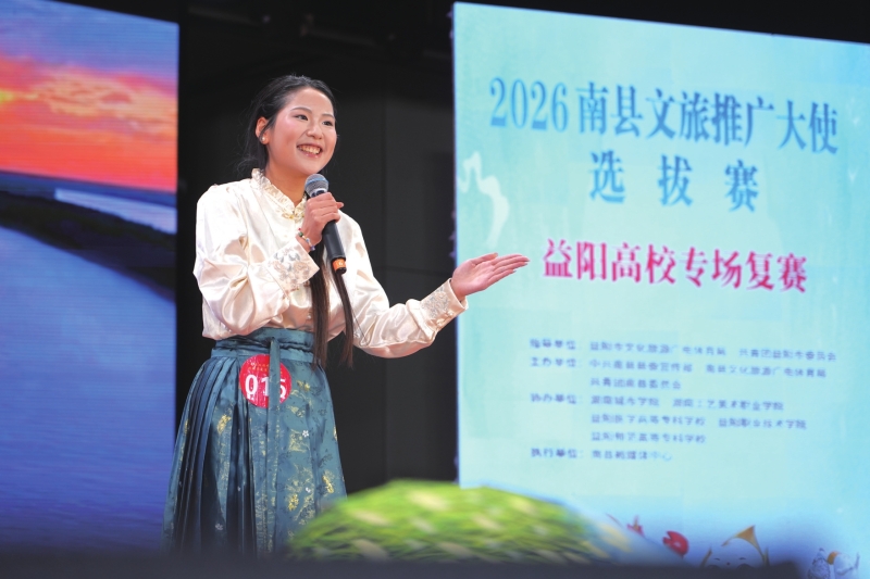 1月8日上午,2026南县文旅推广大使选拔赛(益阳高校专场)复赛在湖南城市学院举行。来自益阳五所高校的学子同台竞技,通过文旅推介和才艺展示两个环节展现个人风采与对南县文旅的理解。