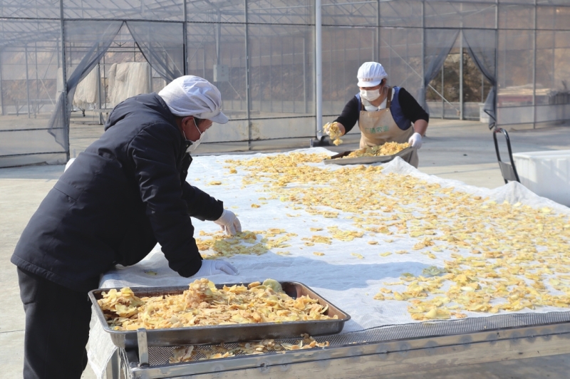 1月12日,在安化县柘溪镇广益社区党群服务中心前坪,工人趁着天气晴好晾晒黄精片,这是“九蒸九晒”古法工艺加工的重要一环。这些黄精片将被制成黄精茶、黄精蜜饯等系列产品,畅销全国多地。该社区集体企业依托黄精产业,集体经济收入突破300万元,并带动附近70多名村民就业。