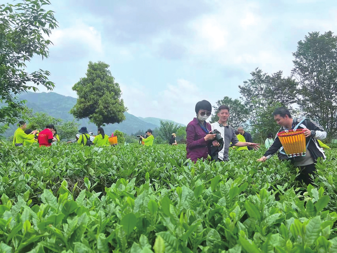 游客在体验采茶。(资料图片)甘果摄