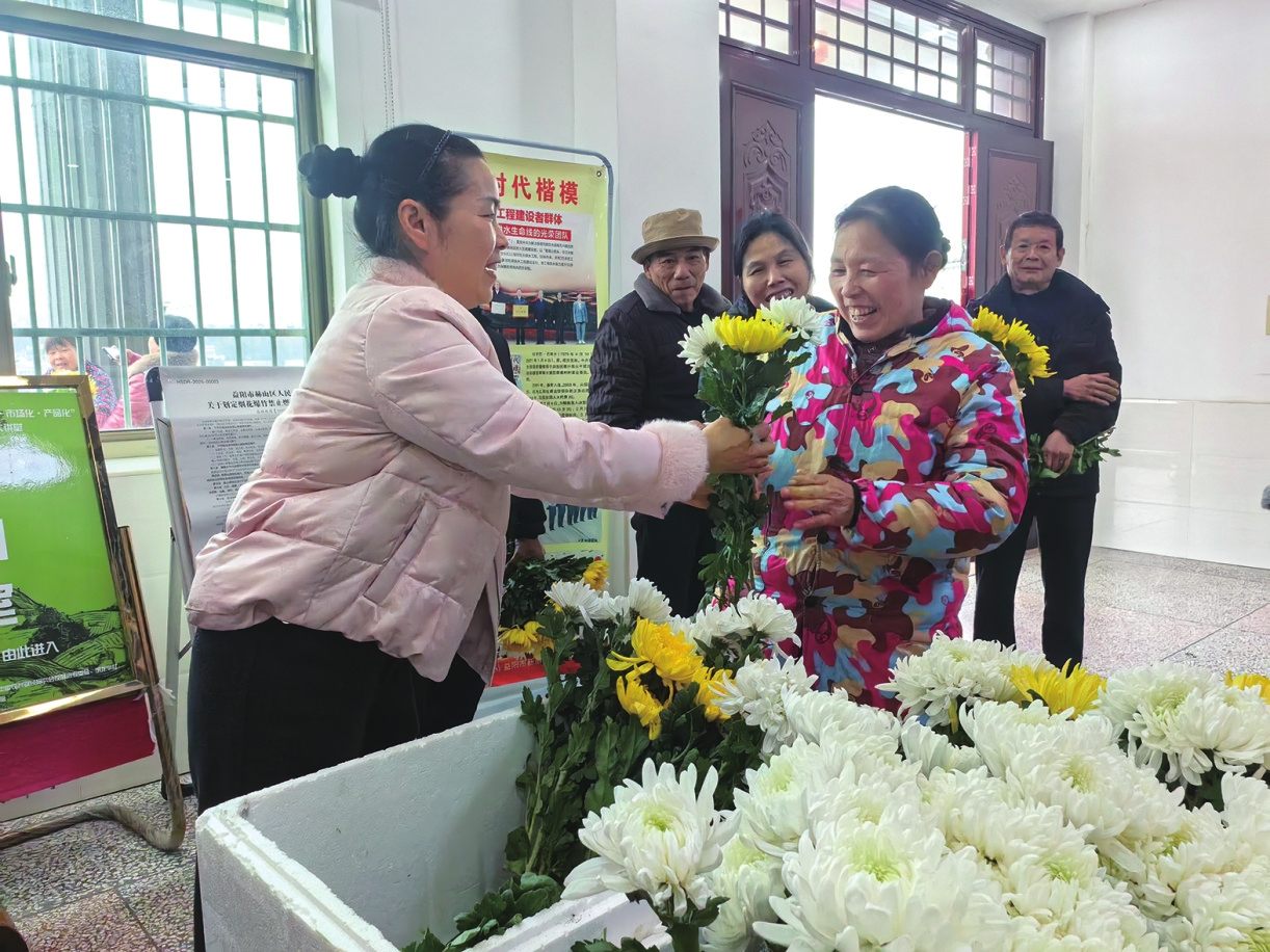 自搭桥村村民领取村“两委”免费提供的菊花,用菊花代替鞭炮祭祀。 曹灿摄