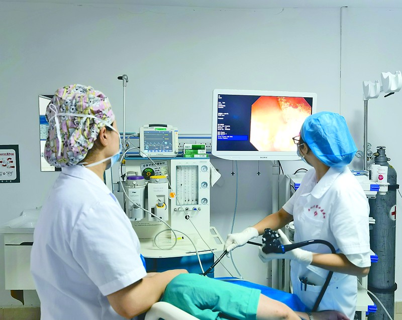 市第一中医医院医护人员为患者进行无痛胃肠镜检查。