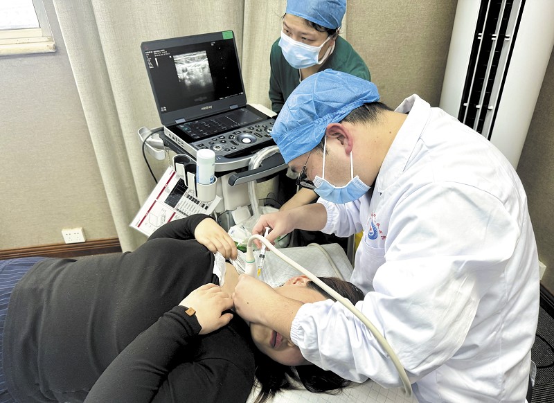 医生借助B超仪器为患者注射药物。周明瑶摄