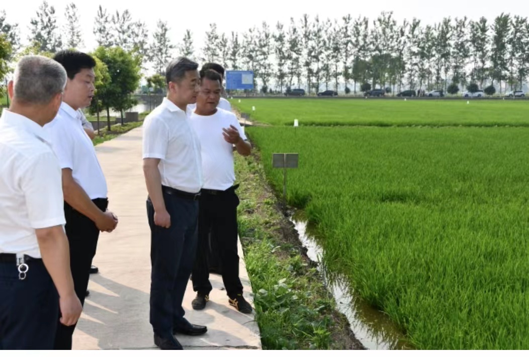 眼下早稻已到了孕穗期,在沅江市共华镇双阜村粮食生产万亩综合示范片,满眼嫩绿的稻苗长势喜人。陈竞来到田头,与相关部门负责人、种粮大户深入交流,详细了解示范片建设、农作物种植、秧苗培育、市场销售等情况,对沅江市粮食生产万亩综合示范片建设及粮食生产工作给予肯定。他要求,沅江市要高度重视粮食生产特别是万亩综合示范片建设工作,以高标准农田建设、落实“五统一、两利用”等为重点,同向发力,层层压实责任,确保粮食生产增产增效。要采取更有力措施,进一步规范综合示范片建设,多渠道、多方式做好示范推广。要立足实际,积极研发、引进新机具新技术,加快农业生产机械化、专业化和科技化进程,推动现代农业高质量发展。要强化保障,在资金、人员、技术等方面加大投入力度,抓好农田、水利设施建设,大力发展种粮大户、专业合作社、职业农民等新型种粮主体,加强基层农技人才队伍建设,提升农业社会化服务水平,为粮食生产万亩综合示范片建设营造良好环境、提供有力支撑。