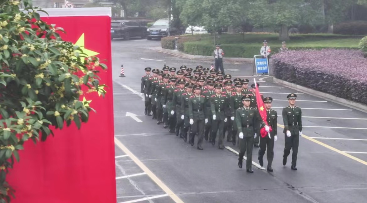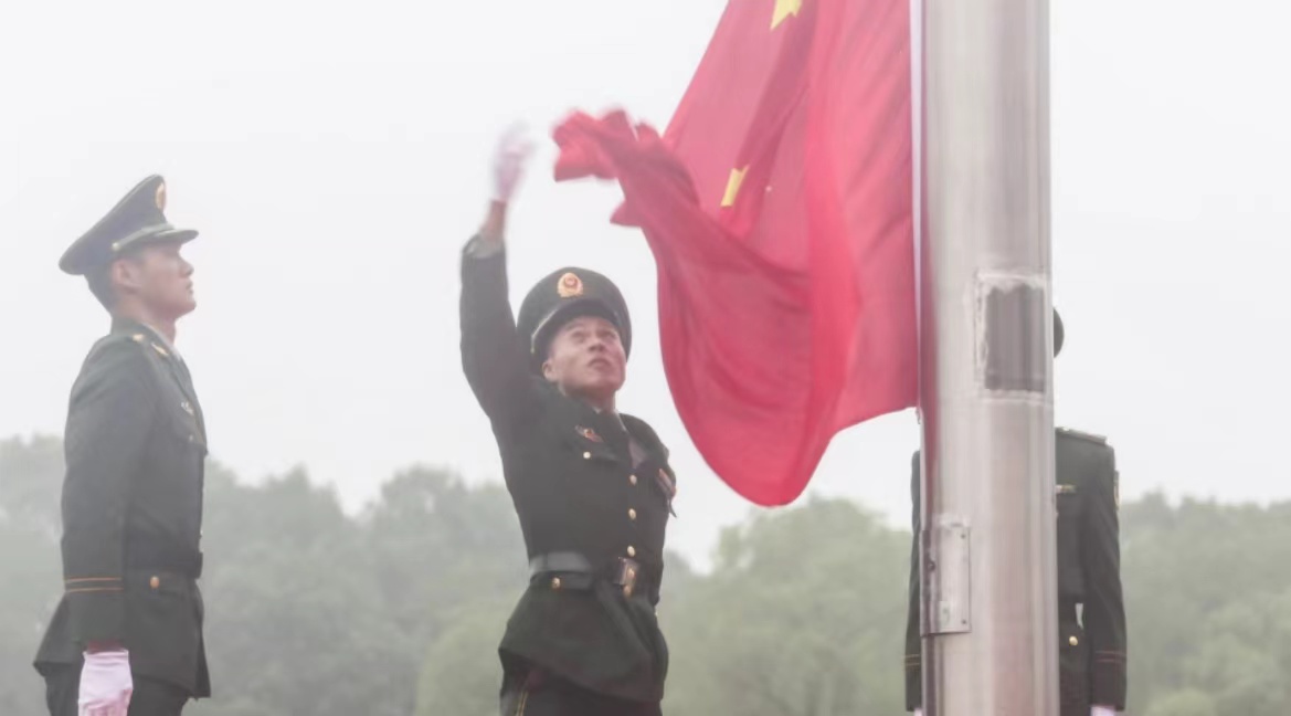 上午8时整,升旗仪式正式开始。在嘹亮的口号声中,国旗护卫队队员迈着整齐矫健的步伐,庄严走向旗台。伴随着雄壮的《义勇军进行曲》,鲜艳的五星红旗冉冉升起。全体人员抬头挺胸、肃然而立,向五星红旗行注目礼,齐声高唱国歌,表达对祖国的赤诚之心和美好祝福。