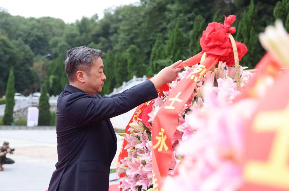 9月30日是烈士纪念日,当天上午,市委书记陈竞、市人大常委会主任彭建忠、市政协主席胡立安等市党政军领导,人民团体有关负责人和全市各界群众代表怀着无比崇敬的心情,来到益阳烈士纪念广场,向革命先烈敬献花篮,缅怀先烈、致敬英雄,进一步汇聚起建设社会主义现代化新益阳的磅礴力量。“礼兵就位!”上午9时许,随着号令,武警礼兵迈着铿锵有力的步伐,齐步行进到烈士纪念碑前伫立。伴随着雄浑高亢的《义勇军进行曲》旋律,全场齐声高唱中华人民共和国国歌。国歌唱毕,全场肃立,向为实现民族独立、人民解放和国家富强而英勇献身的烈士们默哀。默哀毕,少先队员面向烈士纪念碑献唱《我们是共产主义接班人》,并致少年先锋队队礼。