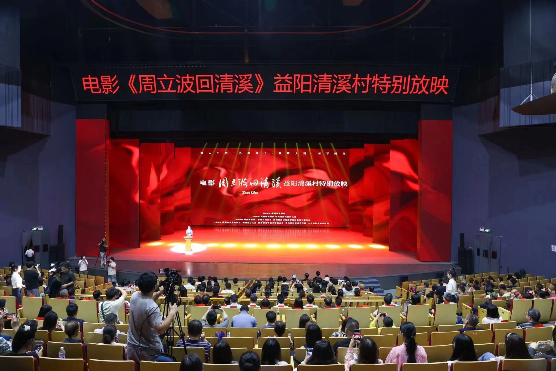 左志锋在致辞中表示,近年来,益阳高新区围绕将清溪村打造为“乡村文化振兴的高地”“农文旅融合发展的样板”“共同富裕的典型”等3个目标,着力打造清溪剧院“一台文学大戏”、茶子花街“一条文学特色街”、中国当代作家签名版图书珍藏馆和清溪书屋“一场文学微旅行”等精品文旅项目,一场新时代的“山乡巨变”正徐徐展开。此次由潇湘电影集团拍摄的《周立波回清溪》来到清溪村,再现当年周立波先生在清溪村激情燃烧的岁月,意义尤为重大。相信电影的上映,必将让更多的人了解周立波、走进清溪村,推动益阳文旅事业蓬勃发展。相信电影的上映,也必将感召更多的人追随周立波先生的脚步,为投报桑梓、振兴乡村出资出智出力,为全面建设社会主义现代化新益阳贡献力量。