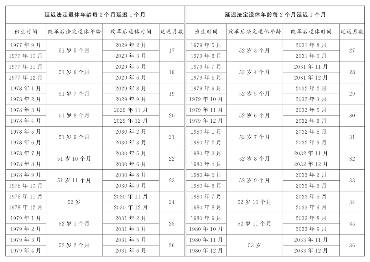 2.原法定退休年龄五十五周岁的女职工延迟法定退休年龄对照表