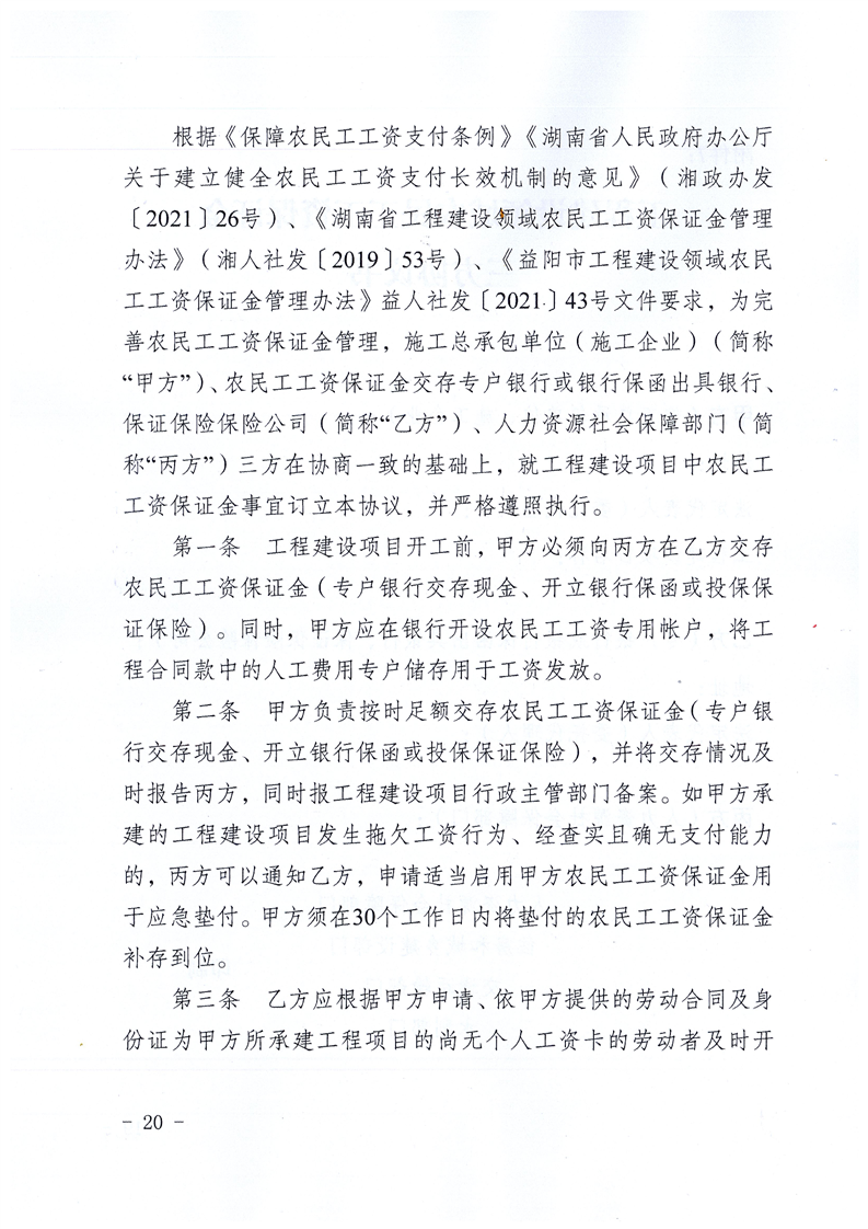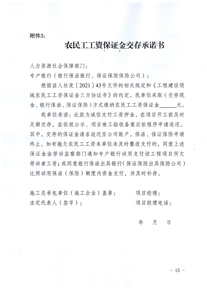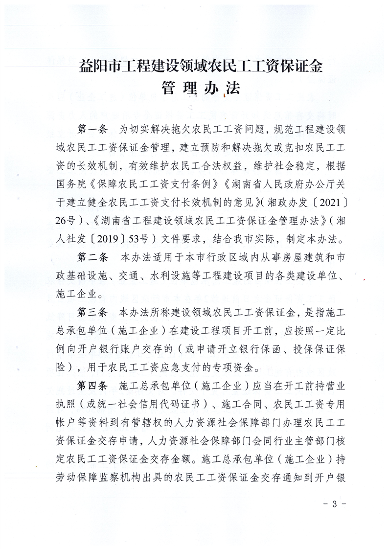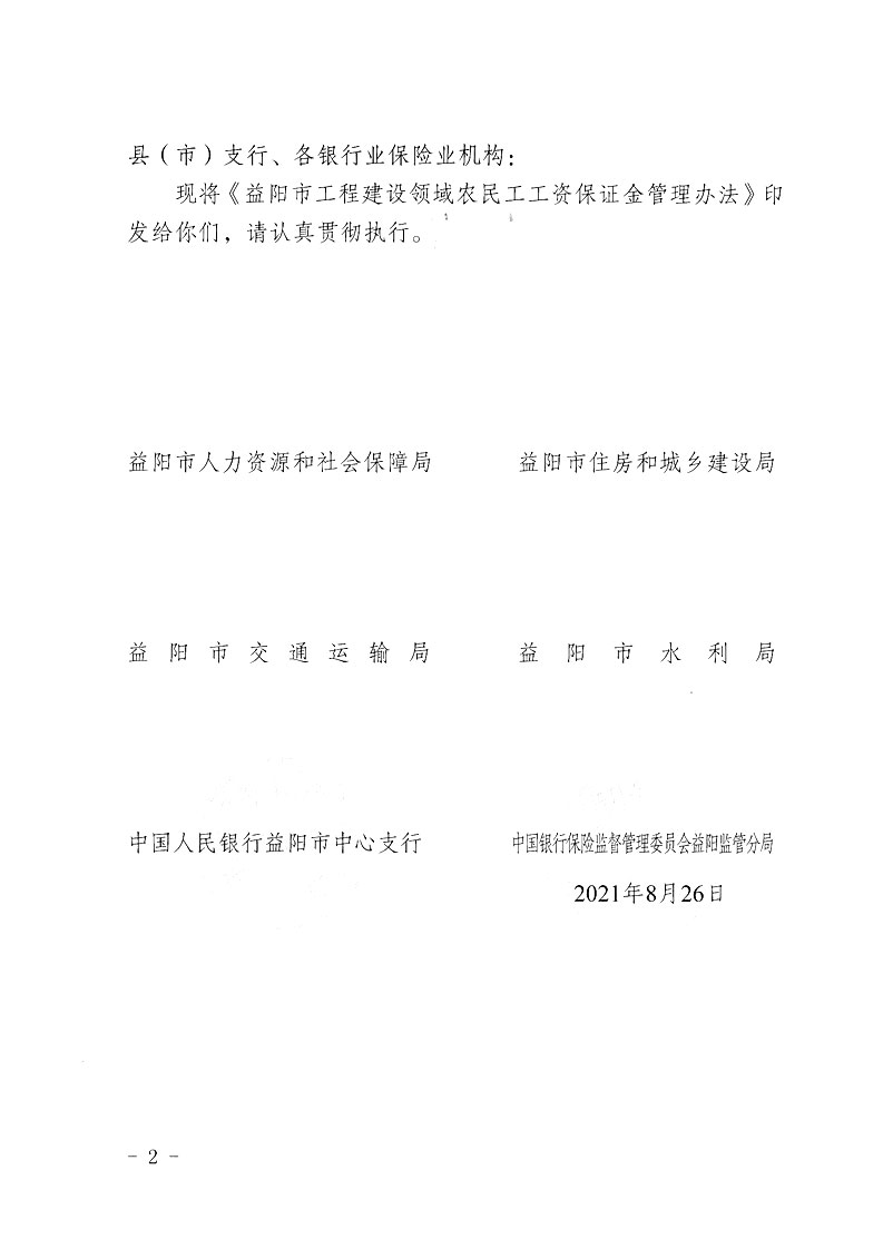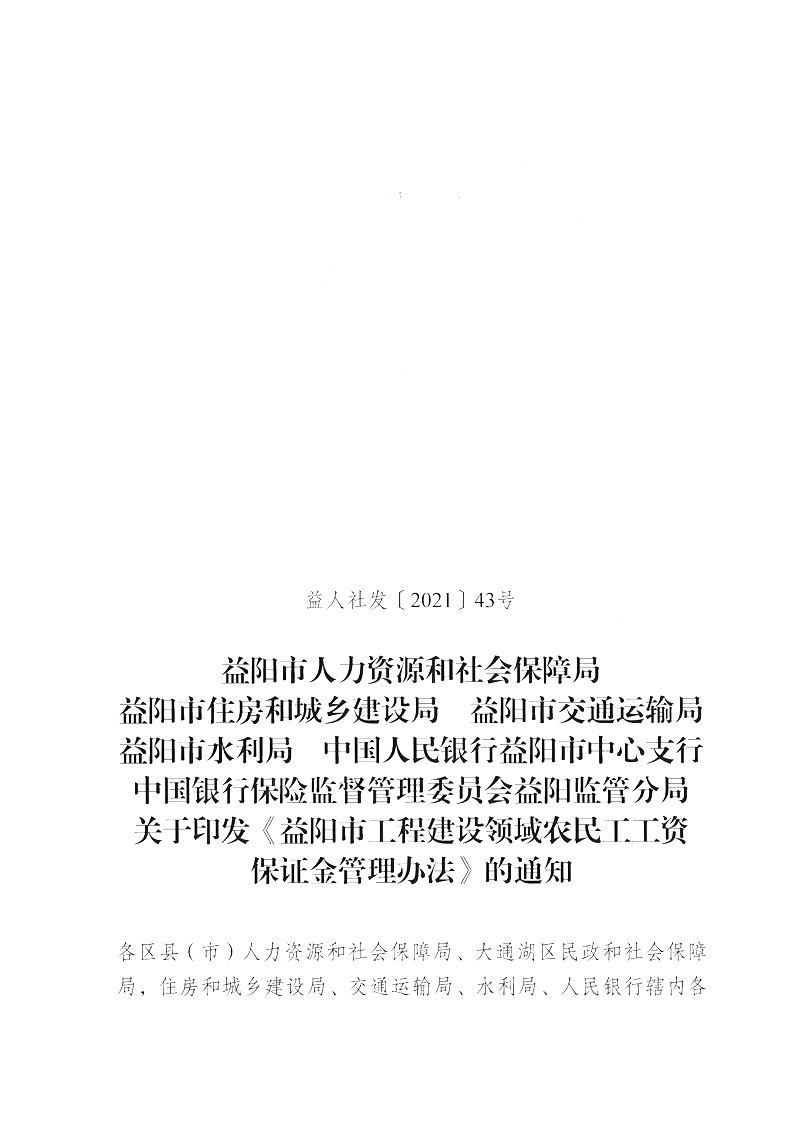 关于印发《益阳市工程建设领域农民工工资保证金管理办法》的通知