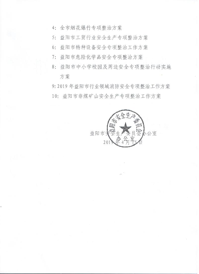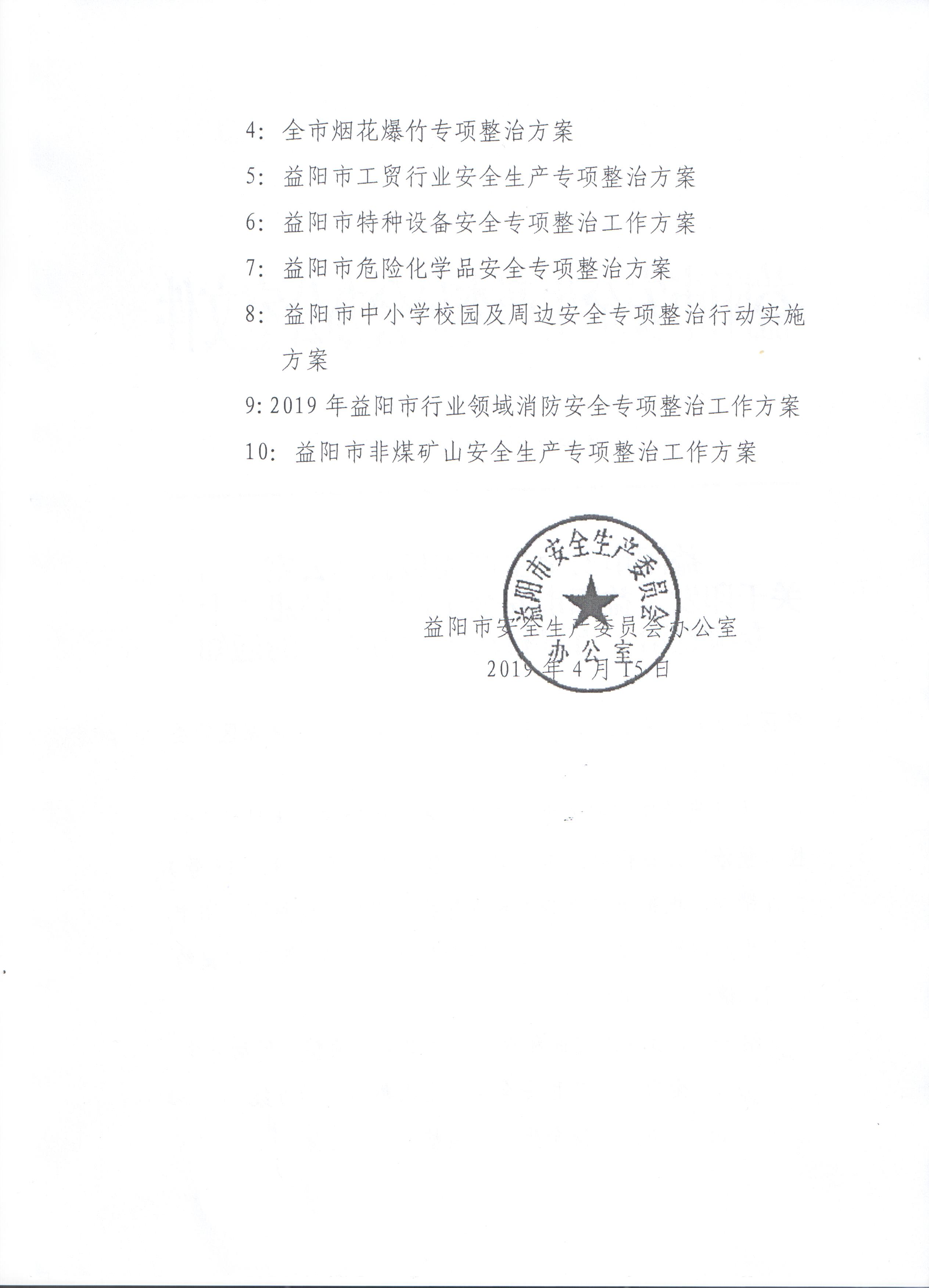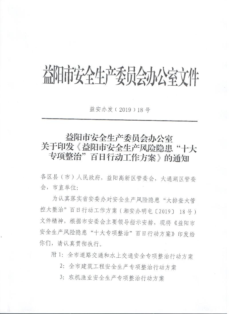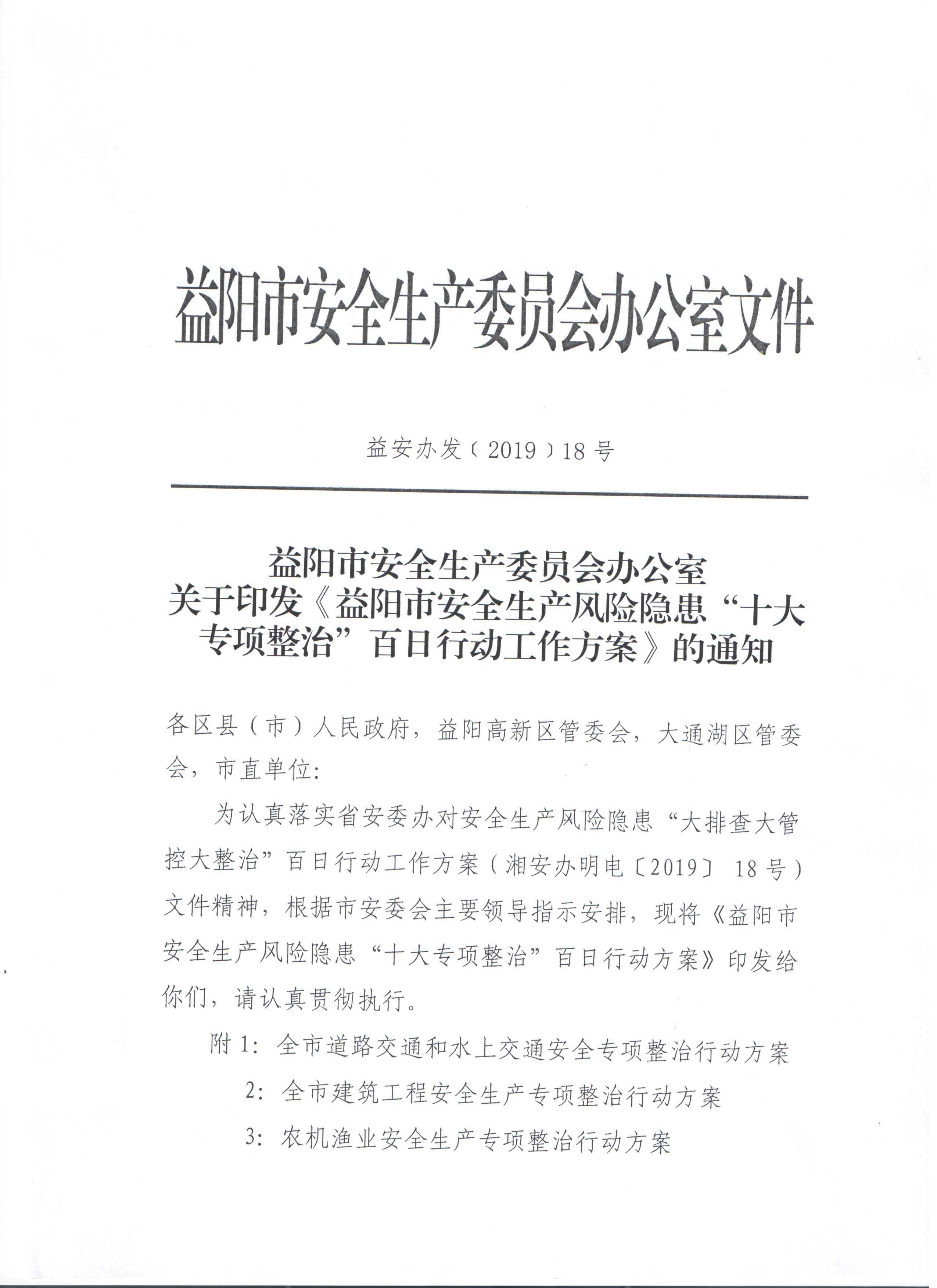 益阳市安全生产委员会办公室关于印发《益阳市安全生产风险隐患“十大专项整治”百日行动工作方案》的通知