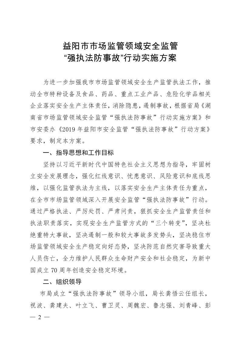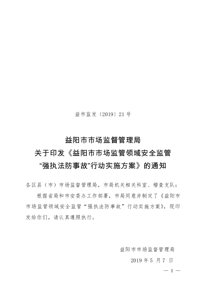 关于印发《益阳市市场监管领域安全监管“强执法防事故”行动实施方案》的通知