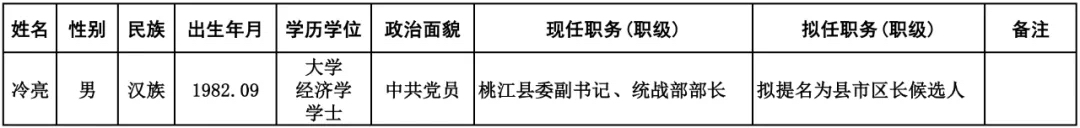 为了加强对干部选拔工作的监督,提高识别和任用干部的准确程度,现对市委常委会会议研究决定的下列1名拟提名人选进行任前公示: