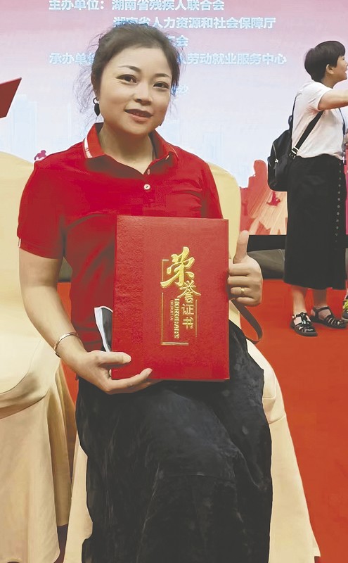 石淑纯从小跟着父母学习制伞技术的她在区残联帮助下,获得残疾人创业扶持资金,成立益阳竹园艺术伞业有限公司。作为益阳市非物质文化遗产石氏小竹伞制作技艺第六代传人,她用技艺表达生命的热度,培训残疾员工掌握非遗知识技能,在实现自我价值的同时,帮助残疾人实现就业梦想。