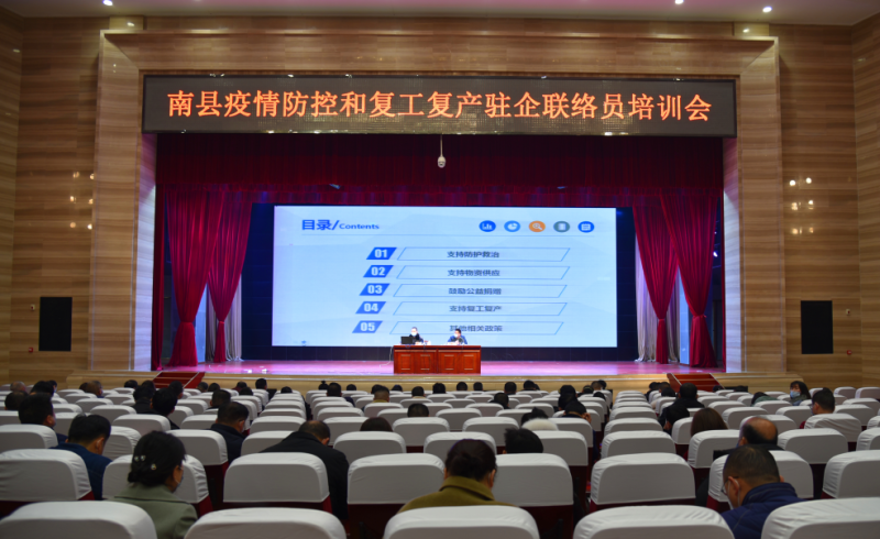 3月5日,南县召开疫情防控和复工复产驻企联络员培训会,对驻企防疫和联络帮扶工作进行再动员、再部署、再培训。副县长罗立峰主持会议,县委副书记肖娟出席并作重要讲话,企业复工复产相关职能部门、全县驻企联络员参加会议。