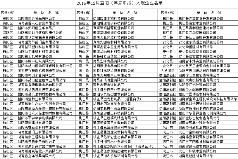 2019年12月底,益阳市90家工业企业通过年度申报批次纳入规模以上工业统计范畴获得通过,将开展2019年规模以上工业企业统计年报等后续工作,与当年已入规入统的76家新投产工业企业合计,全市当年共新增规模以上工业企业166家。