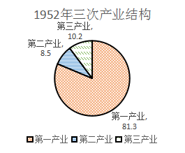 经济总量不断提高,综合实力不断提升的同时,益阳市一二三产业结构不断优化,经济结构实现由低级到高级、不均衡到相对均衡的巨大调整,经济发展的协调性明显增强。1949年,全市农业占绝对优势,一产业比重达到90%以上,三产业几乎可以忽略不计,1952年全市三次产业结构比为81.3:8.5:10.2,到1978年全市三次产业结构调整为50.5:33.5:16.0。2020年全市一、二、三产业增加值分别为320.1亿元、793.1亿元和740.3亿元,三次产业结构进一步优化为17.3:42.8:39.9。第一产业占全市地区生产总值的比重由1952年的81.3%下降到2020年的17.3%,降低了64个百分点;第二产业占全市地区生产总值的比重从1952年的8.5%上升到2020年的42.8%,提高34.3个百分点;第三产业占全市地区生产总值的比重从1952年的10.2%上升到2020年的39.9%,提高29.7个百分点。农业基础地位不断增强,工业、服务业成为带动全市经济快速发展的主力。