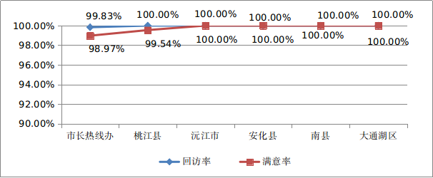 随机抽查各单位2-8件短信回访未评价工单,主要抽查办理单位回访情况和满意度情况,共抽查136件。办理单位已回访134件,未回访2件,总体回访率为98.5%,较上月下降0.6个百分点,大通湖区、移动益阳分公司抽查回访率未达到100%。群众评价为满意122件,不满意14件,总体满意率为89.7%,较上月上升3.9个百分点,区县(市)抽查满意率沅江市、安化县、资阳区、桃江县达到100%,市直部门有8个单位抽查满意率达到100%。