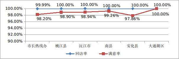 对各承办单位随机抽查2-8件短信回访未评价工单,共抽查186件,已回访179件,未回访7件,总体回访率为96.2%,较上月下降2个百分点。桃江县、南县、高新区、市中心医院、保险协会、联通公司、市邮政管理局抽查回访率未达到100%。群众评价为满意166件,不满意20件,抽查回访满意率为89.2%,较上月上升2.9个百分点,资阳区、安化县、桃江县、南县、大通湖区、高新区和9个市直部门抽查满意率未达到100%。