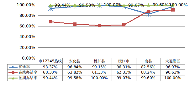 从受理办理情况分析:从接通率情况看,南县接通率未达到95%。