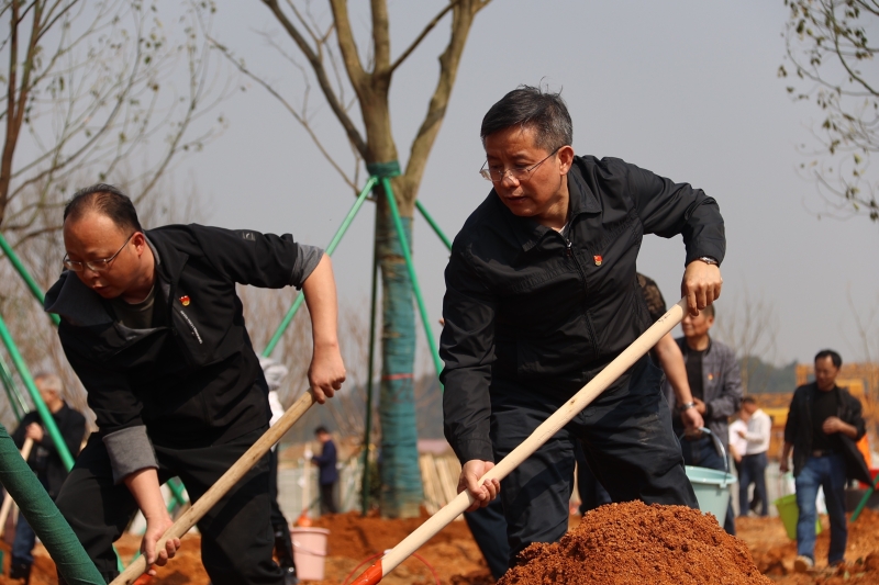 3月11日上午,市委书记瞿海,市委副书记、市长陈竞,市人大常委会主任彭建忠,市政协主席胡立安等领导同志来到高铁益阳南站北广场参加义务植树活动,以实际行动号召全民义务植树,共建绿色益阳。