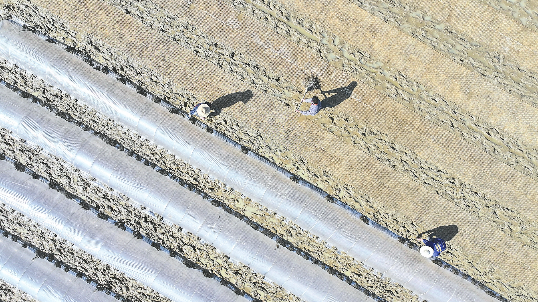资阳区新桥河镇廖河村的村民在田里覆盖薄膜。黄云摄