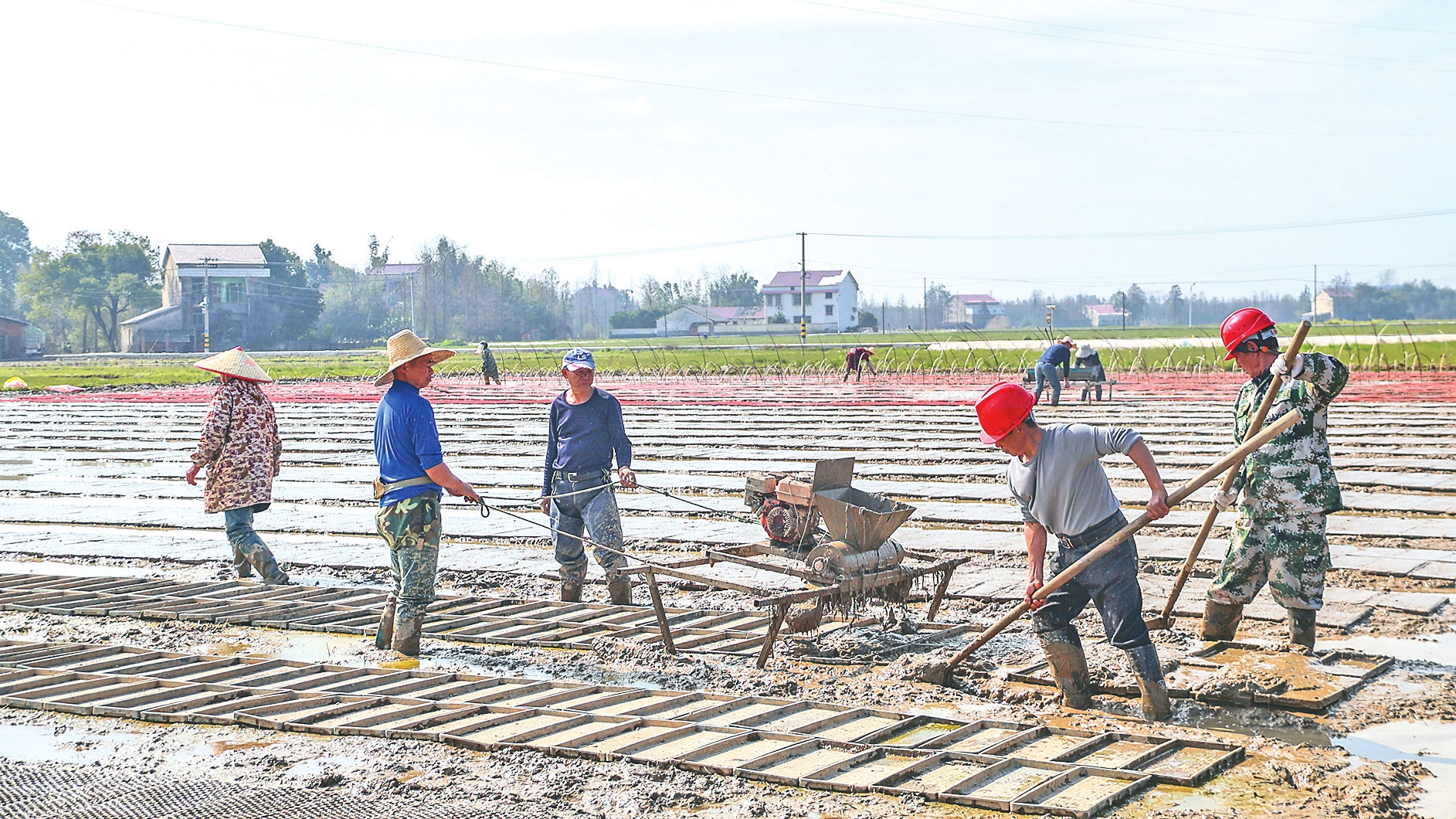 赫山区八字哨镇,农民在育秧田里精耕细作。卢静摄