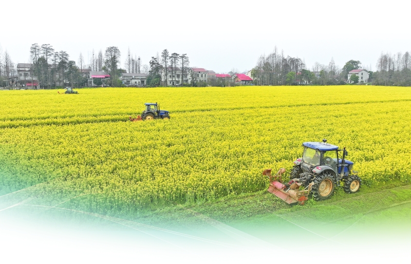 沅江市草尾镇的田野上,旋耕机将一季冬收后的荠菜花翻耕入田。钟祖彪摄