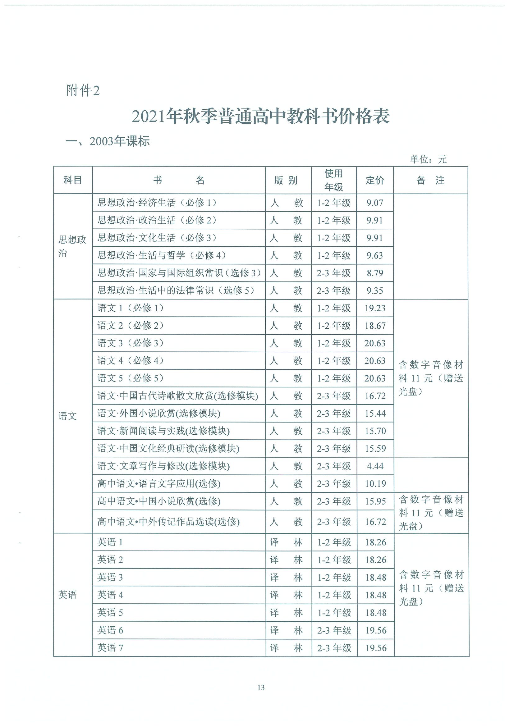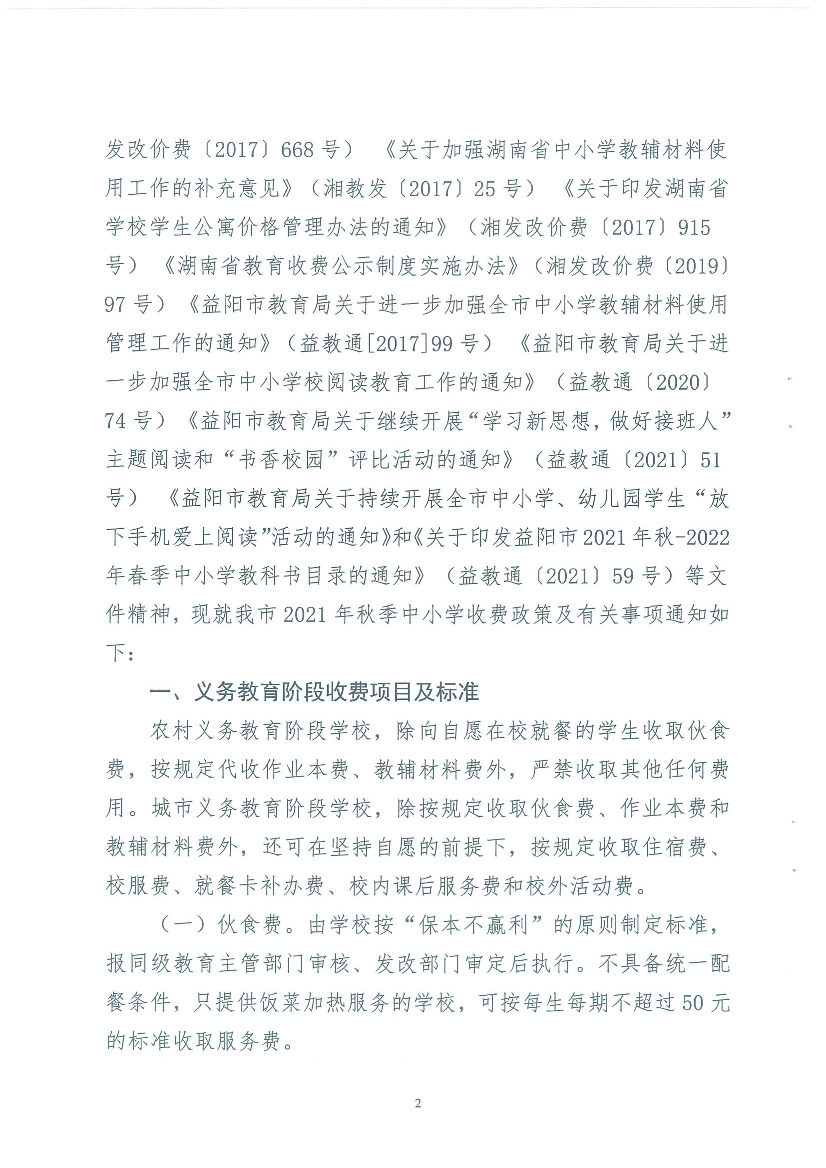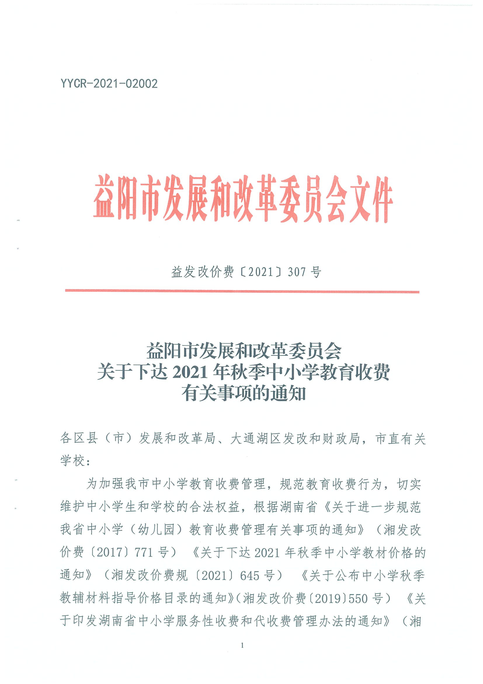 关于下达2021年秋季中小学教育收费有关事项的通知