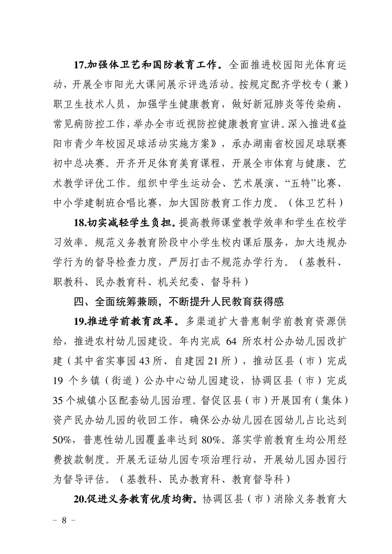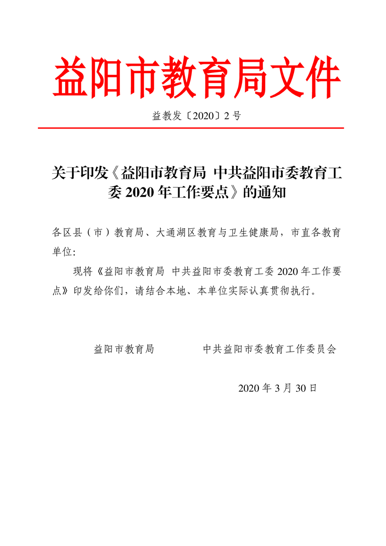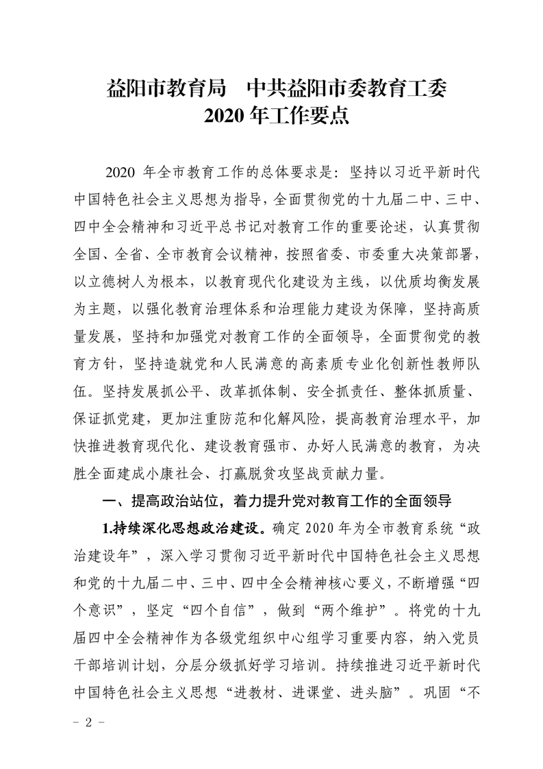 益阳市教育局 中共益阳市委教育工委2020年工作要点