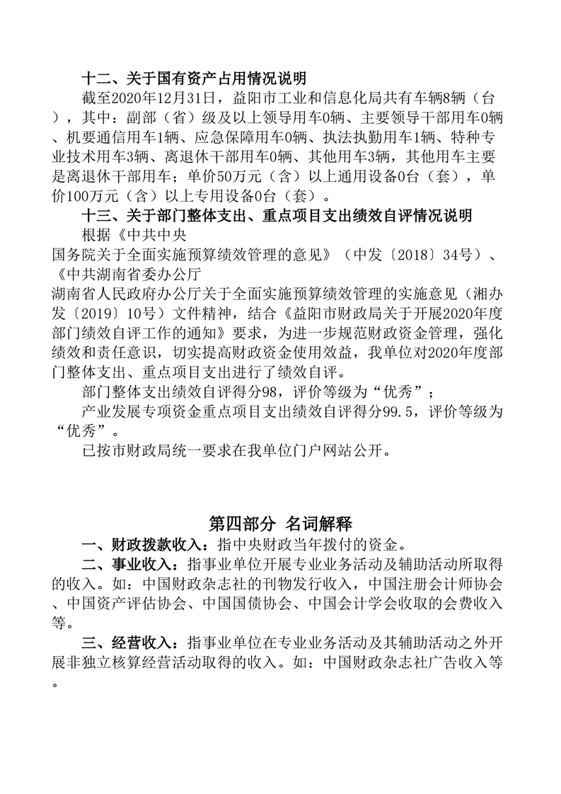 附件1:2020年度益阳市工业和信息化局整体支出绩效自评报告.docx