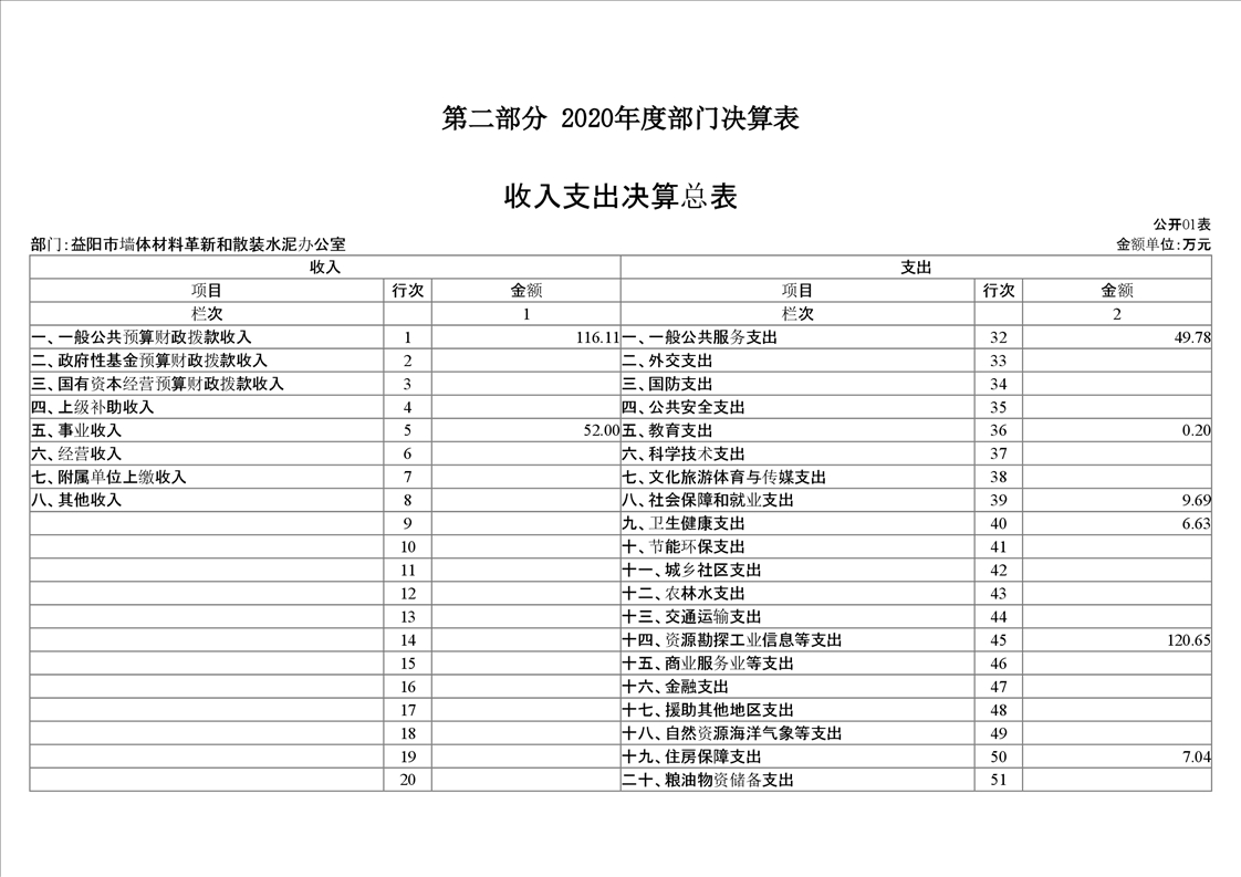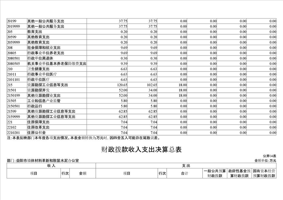 2020年度益阳市墙体材料革新和散装水泥办公室部门决算