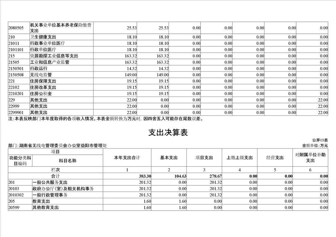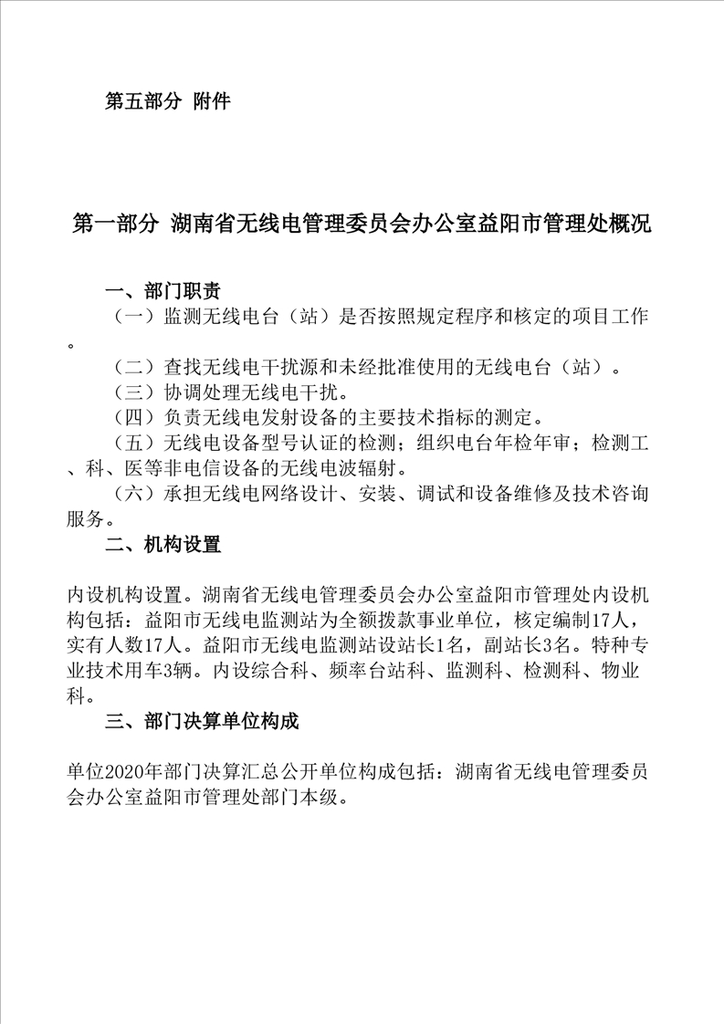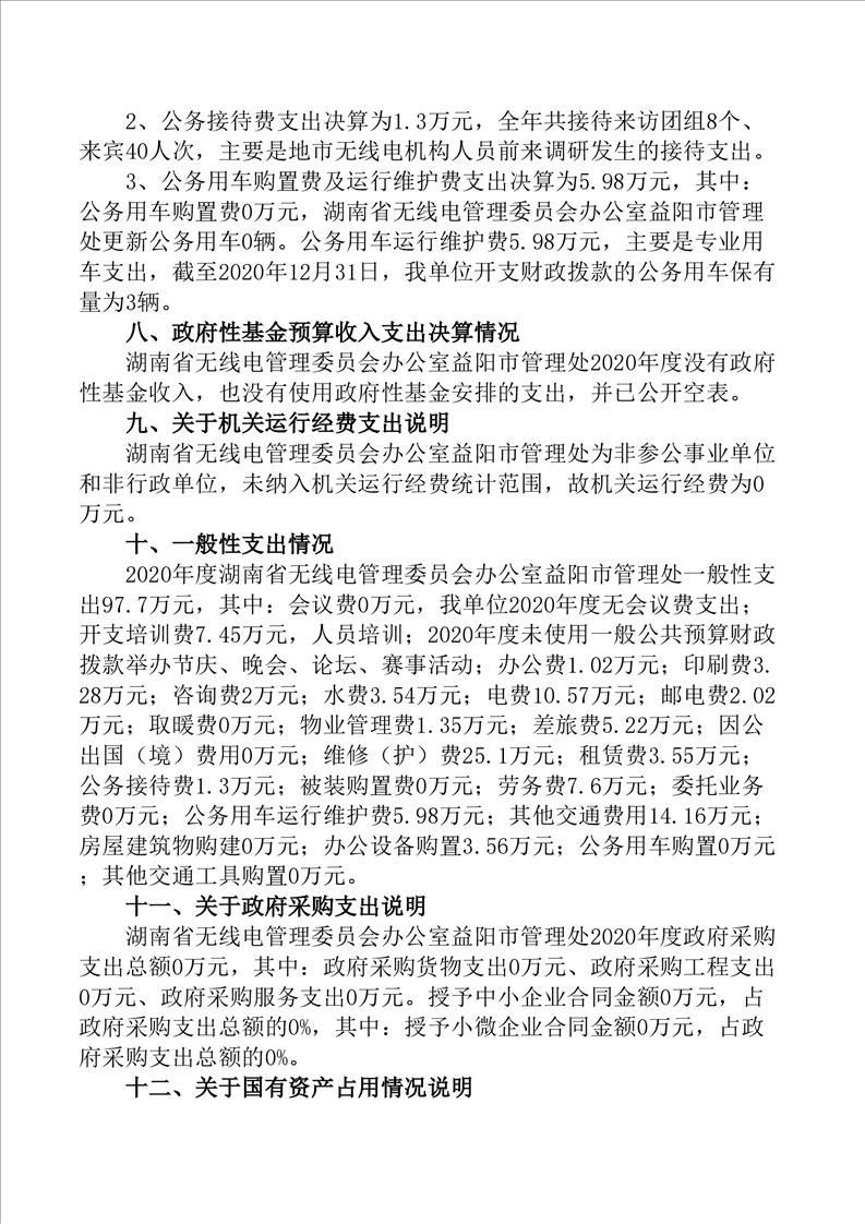 2020年度湖南省无线电管理委员会办公室益阳市管理处部门决算