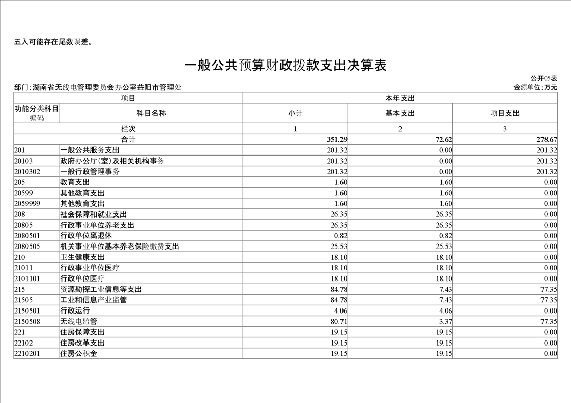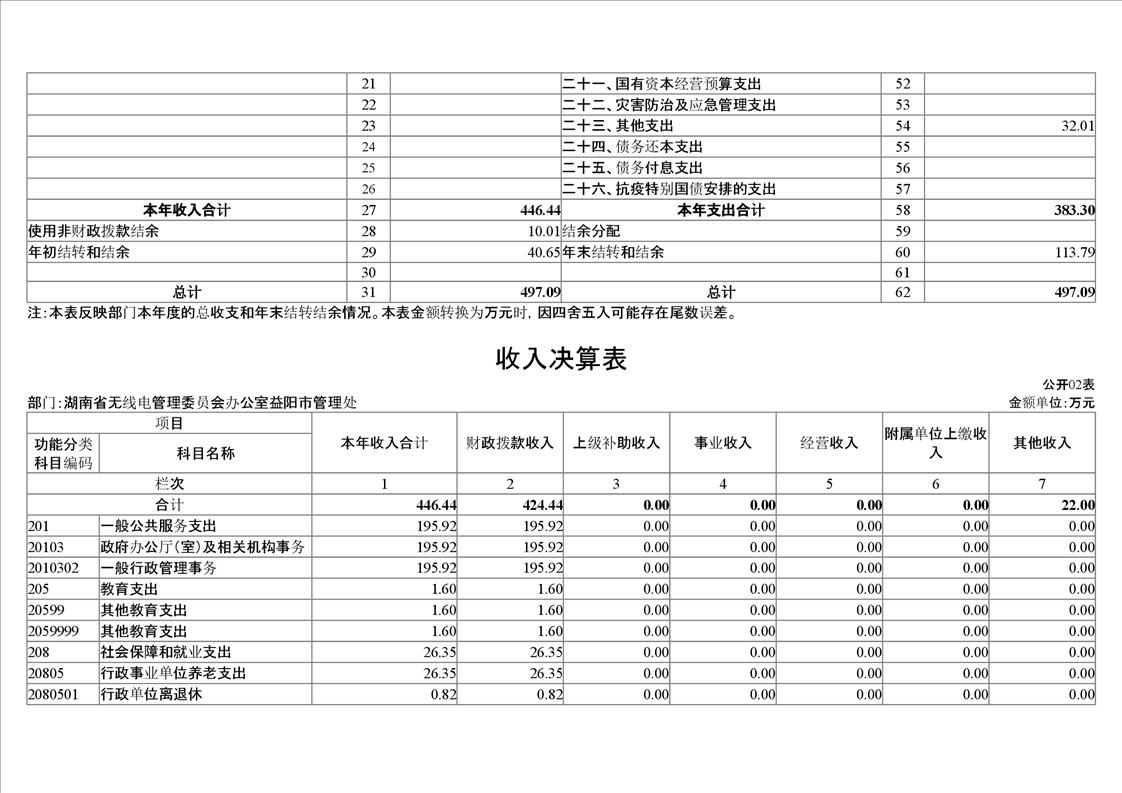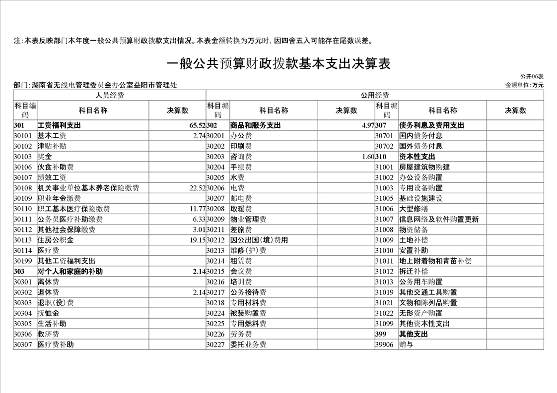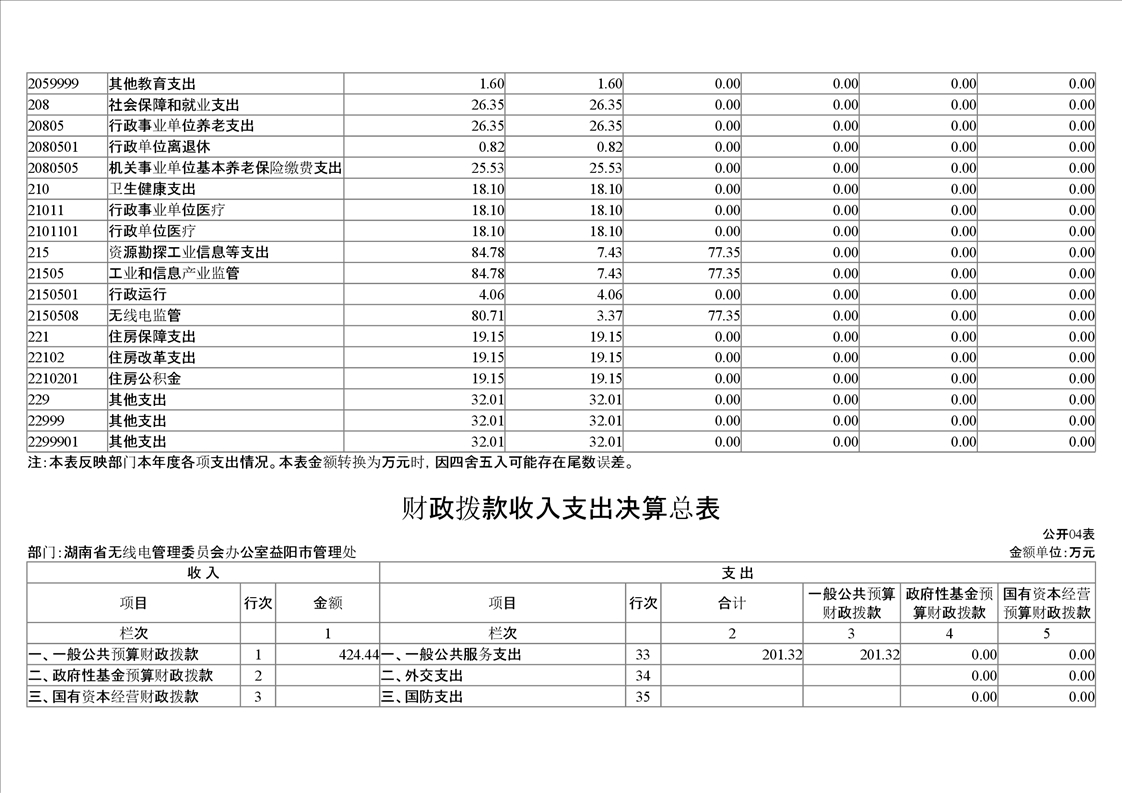 2020年度湖南省无线电管理委员会办公室益阳市管理处部门决算