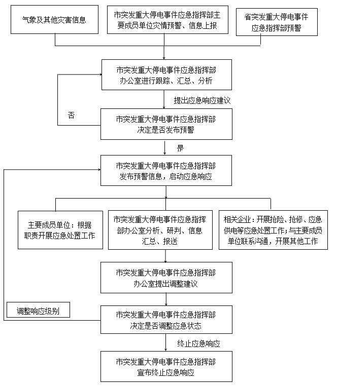 (5)提请市突发重大停电事件应急指挥部启动或终止应急响应;