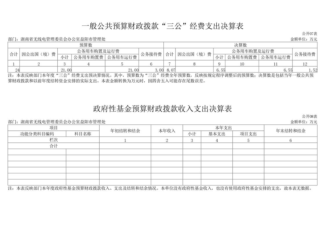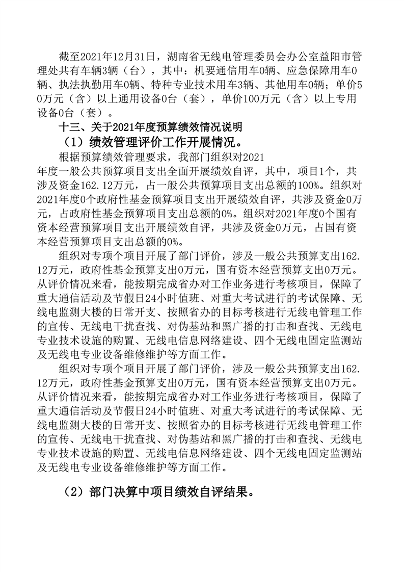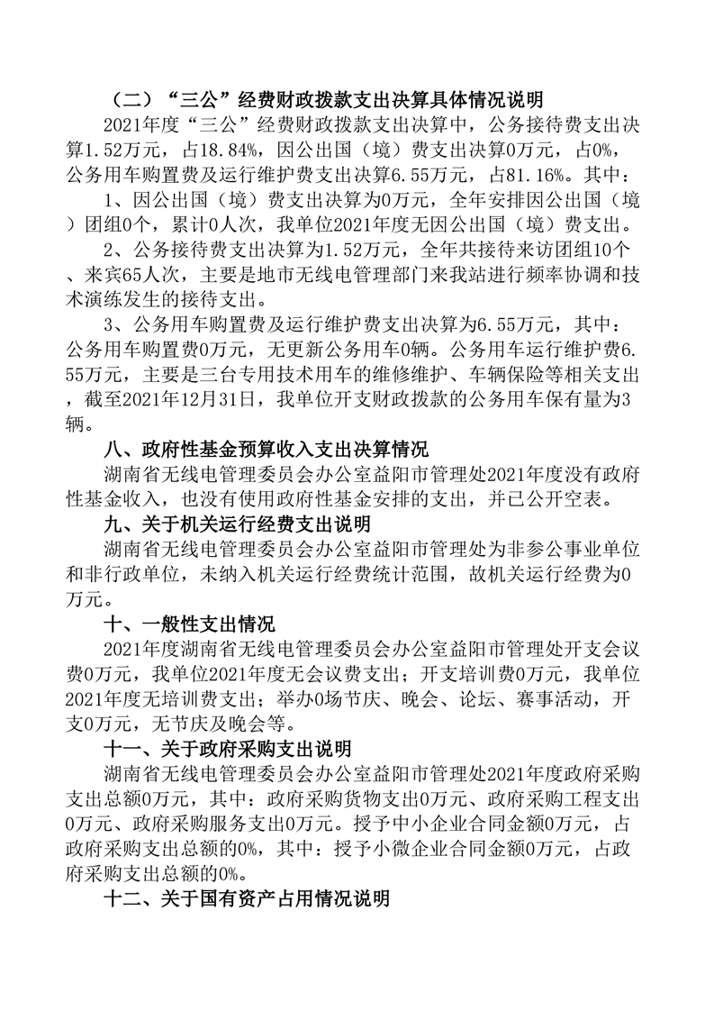 湖南省无线电管理委员会办公室益阳市管理处(益阳市无线电监测站)2021年部门决算公开说明