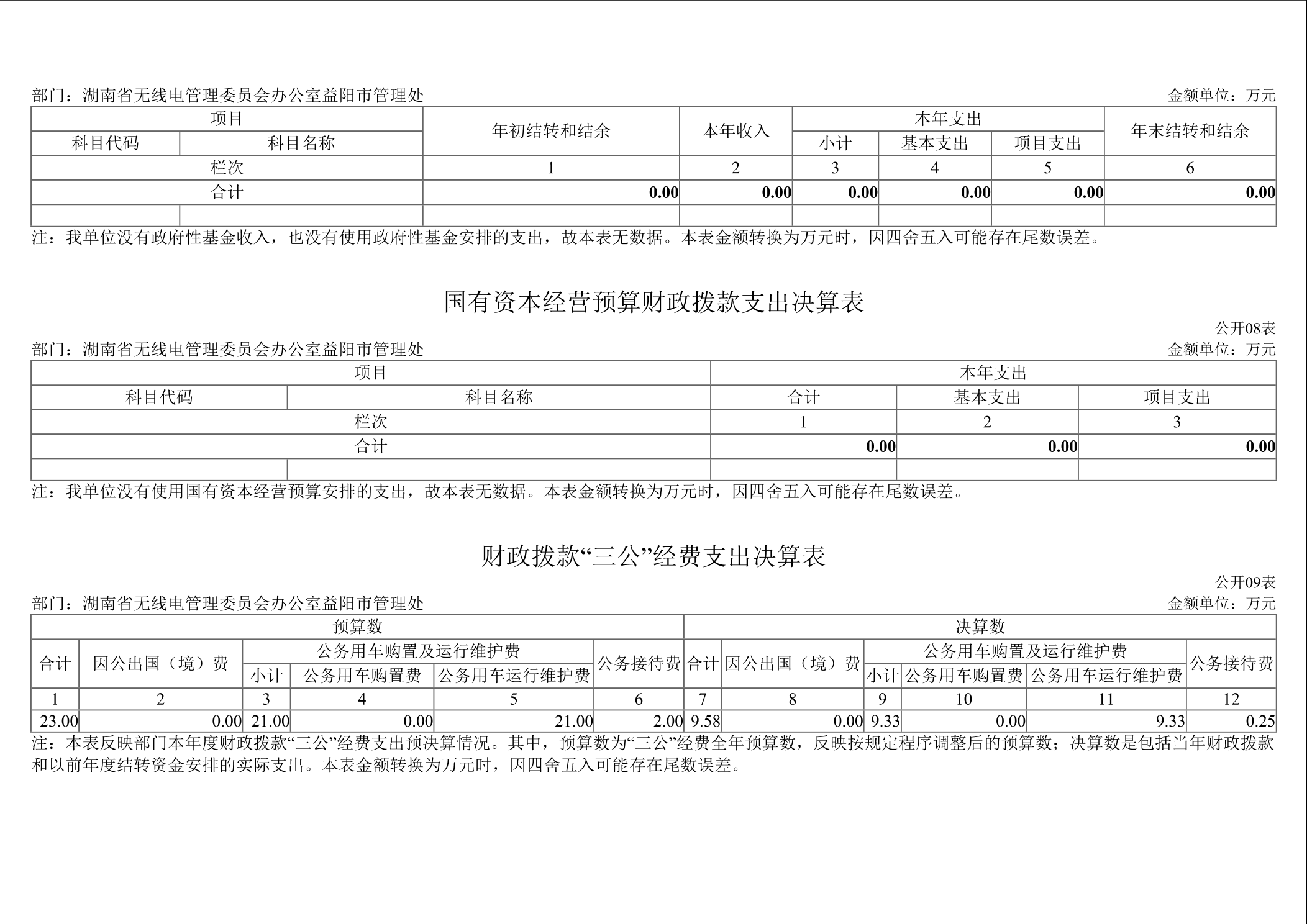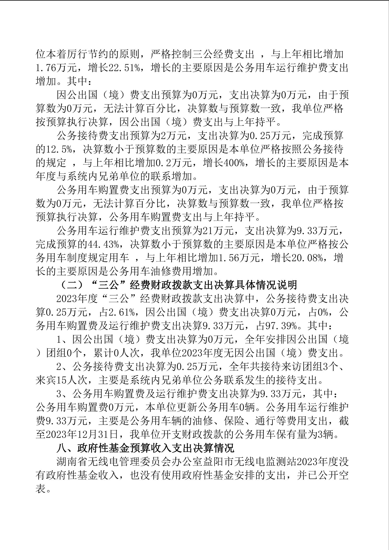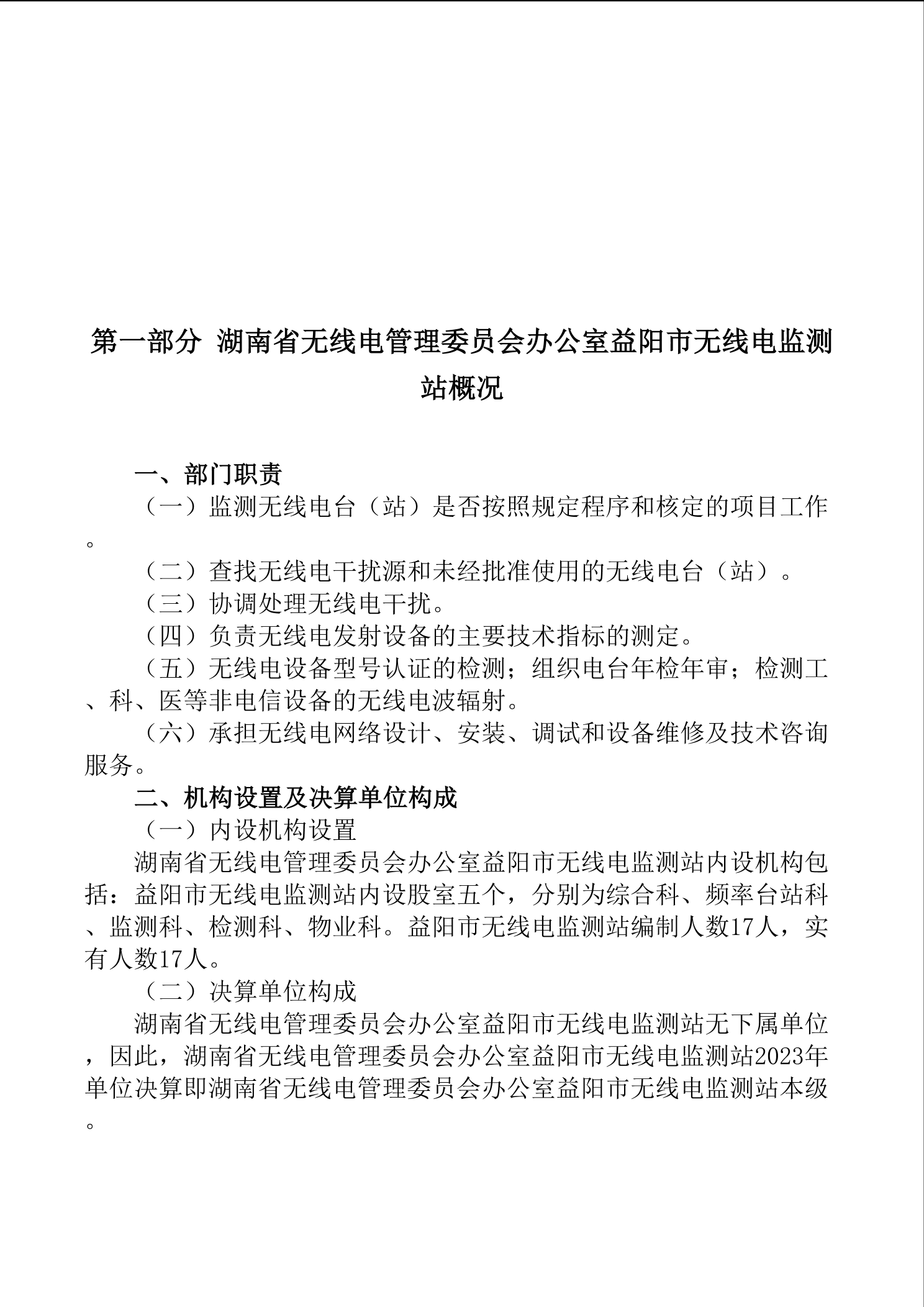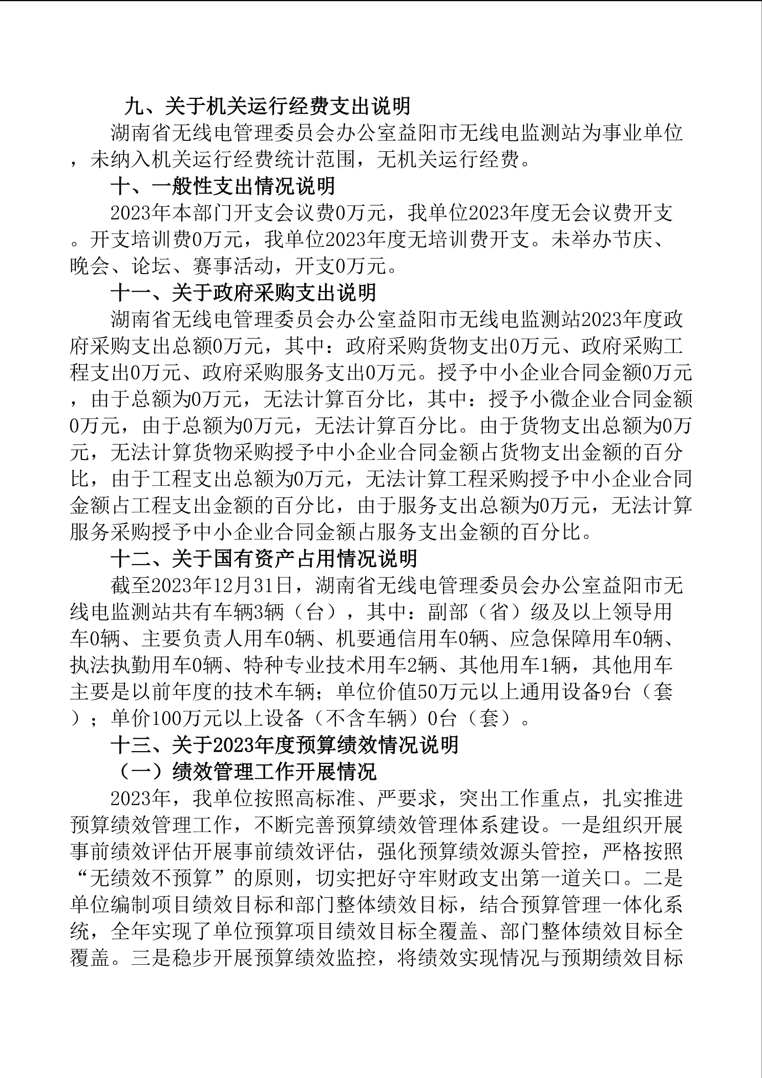 2023年度湖南省无线电管理委员会办公室益阳市无线电监测站部门决算