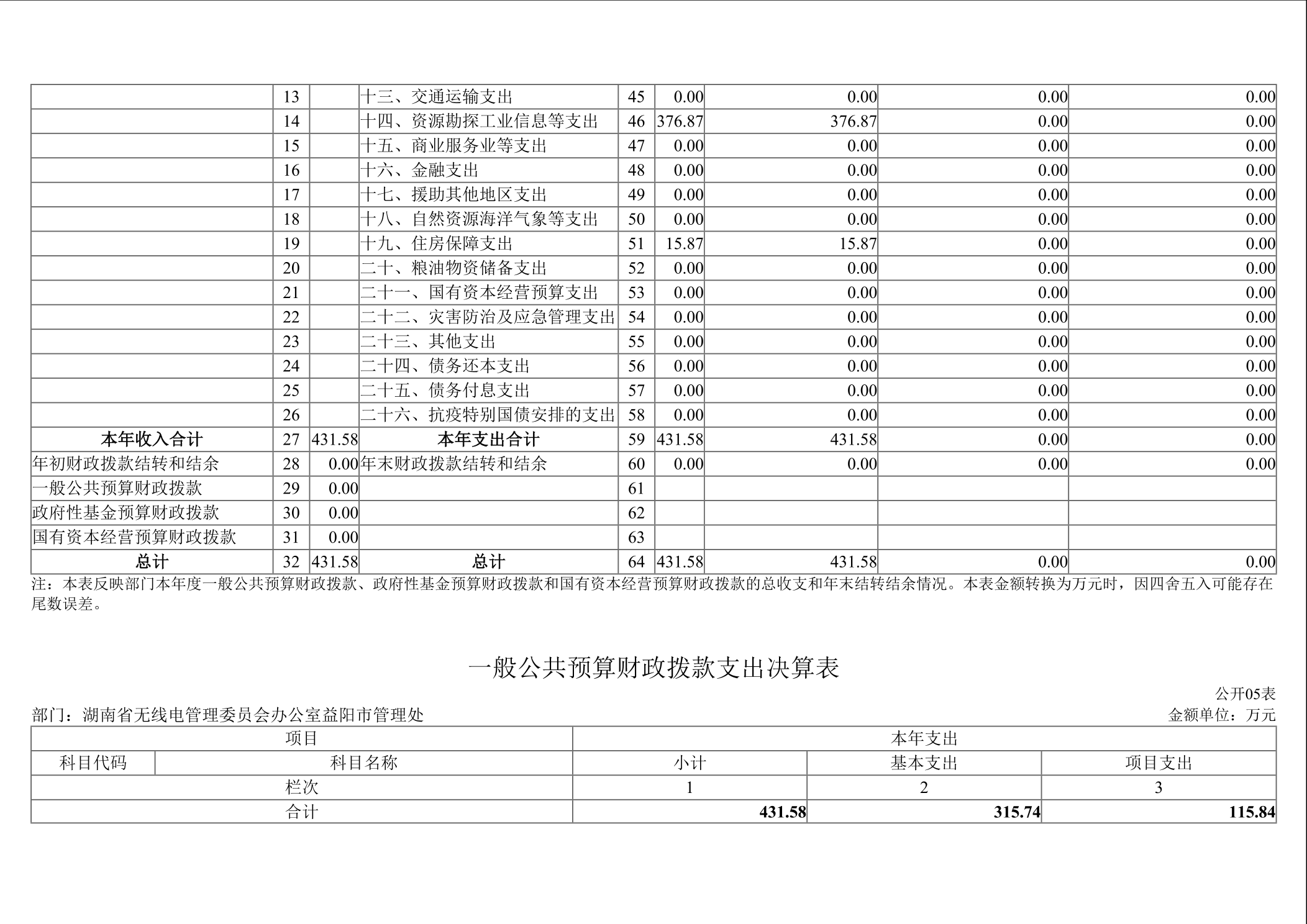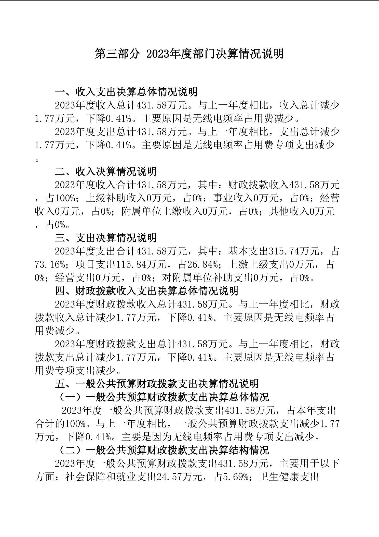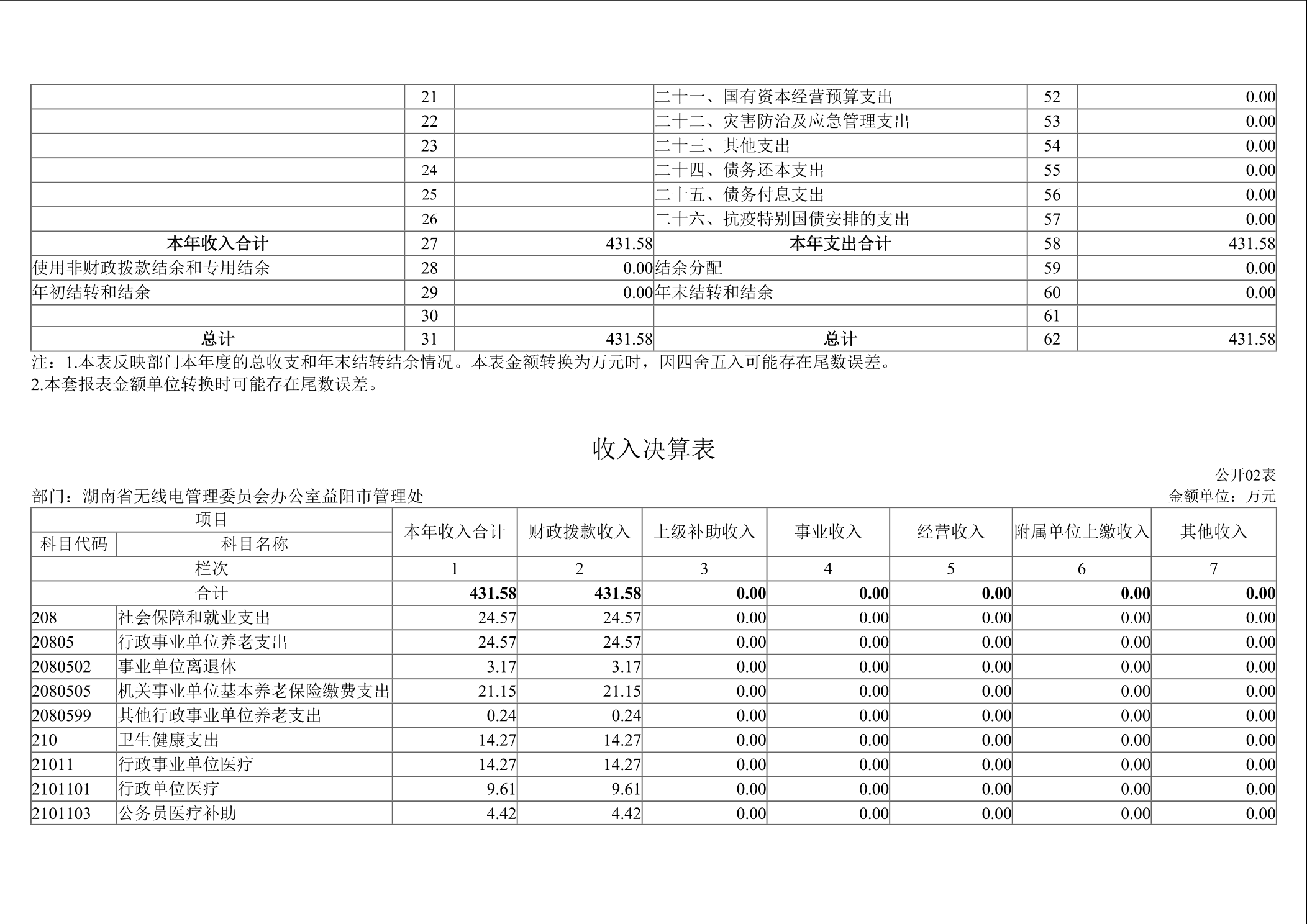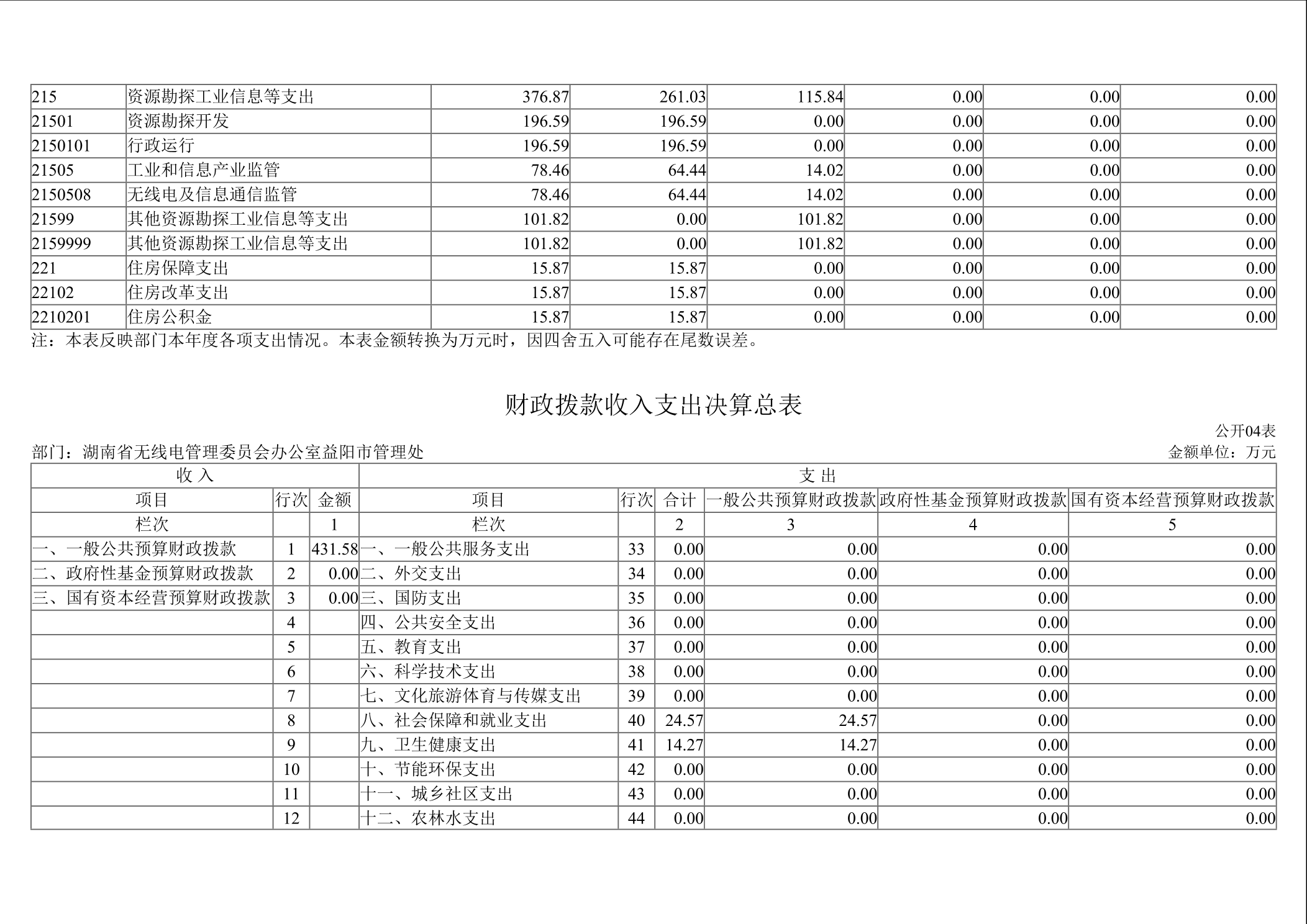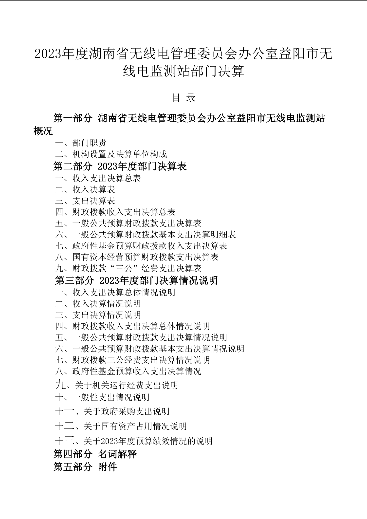 2023年度湖南省无线电管理委员会办公室益阳市无线电监测站部门决算