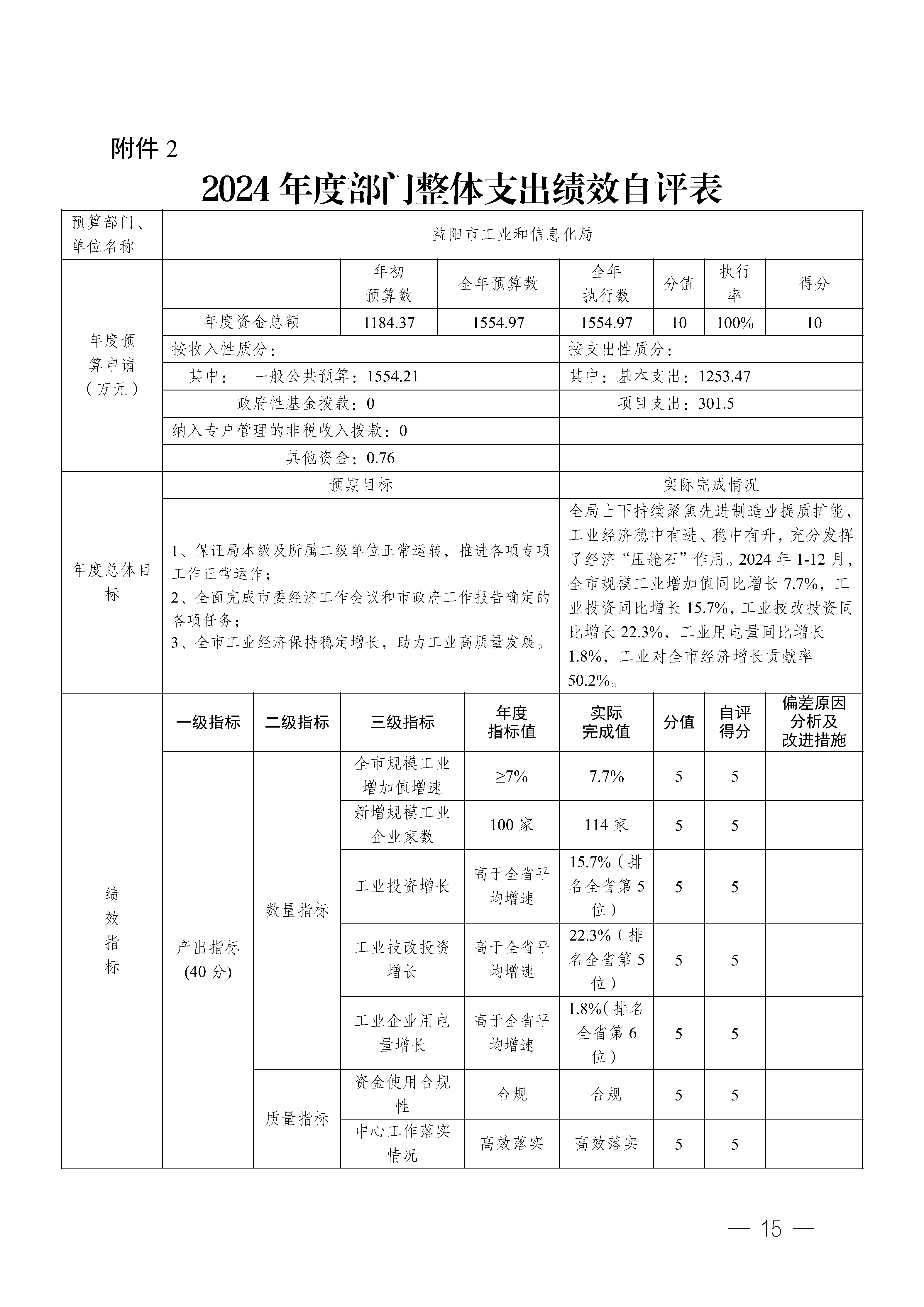 2024年度益阳市工业和信息化局整体支出绩效自评报告