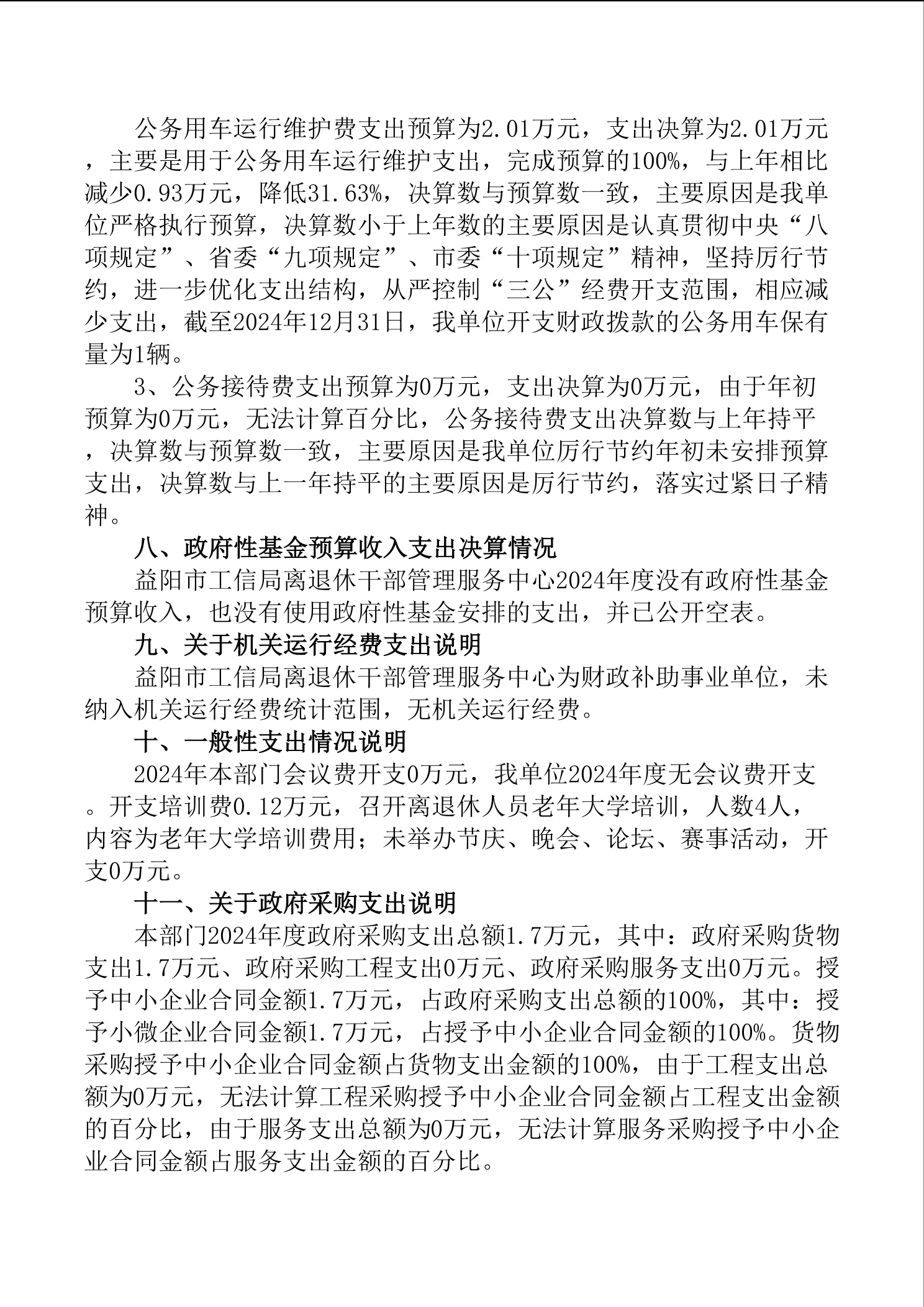 益阳市工业和信息化局离退休干部管理服务中心2024年决算公开说明