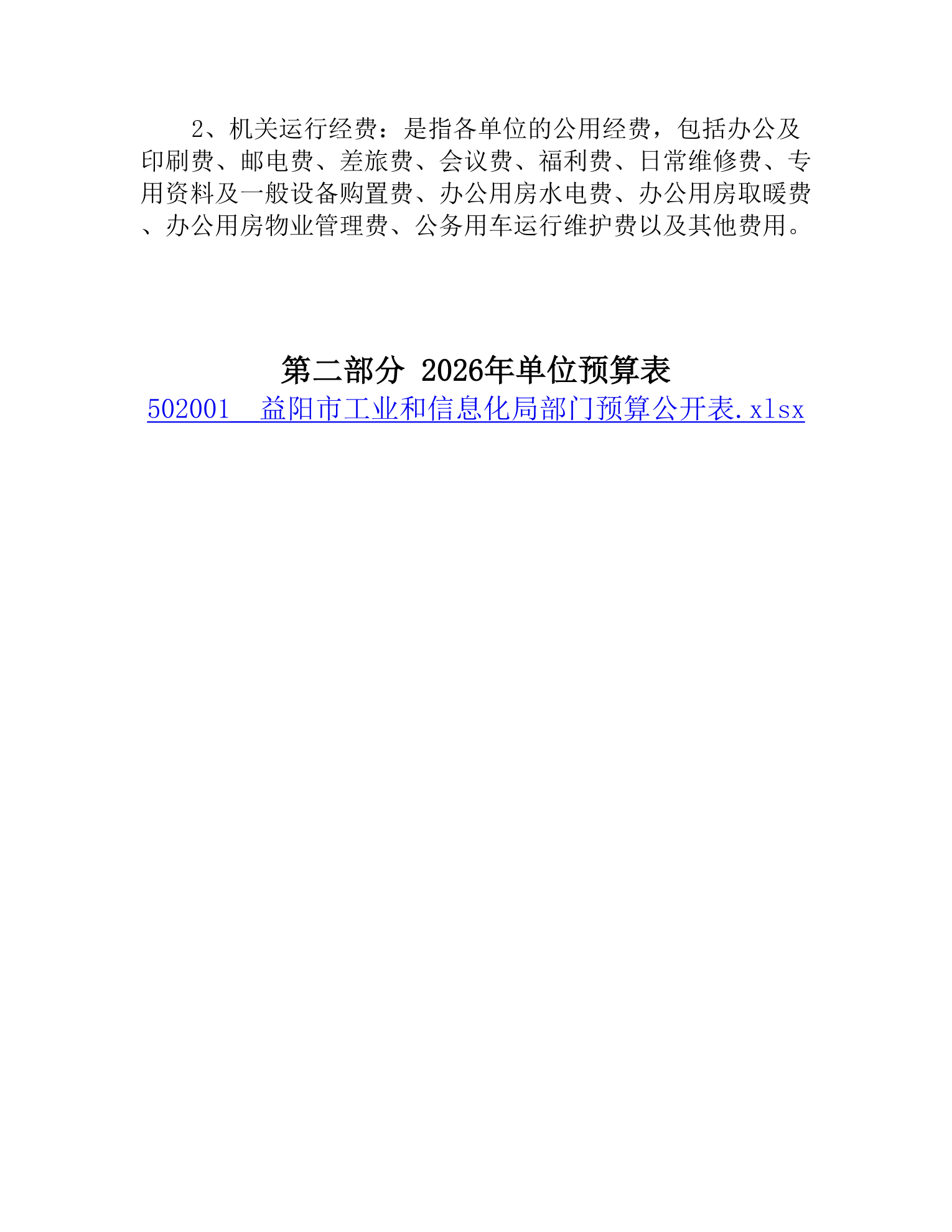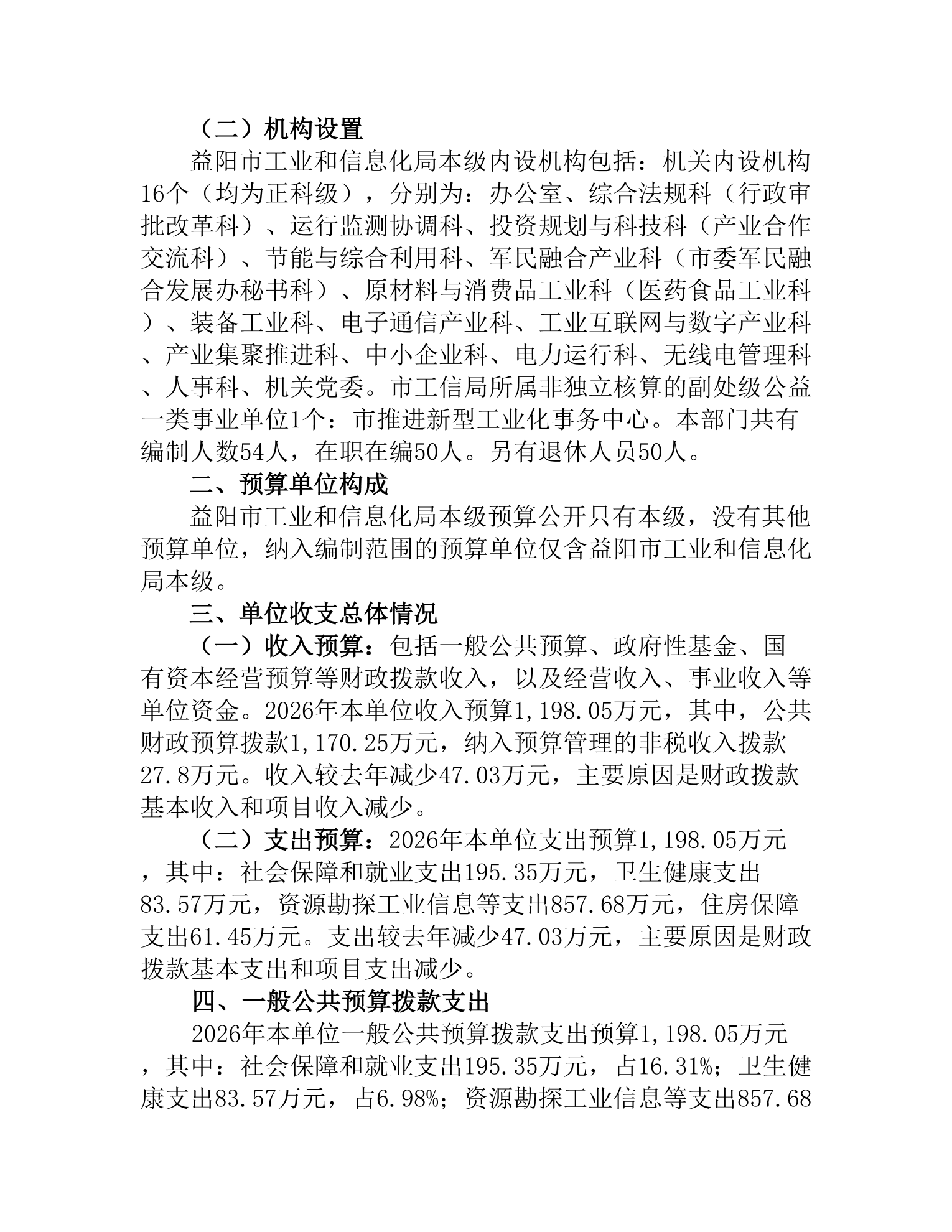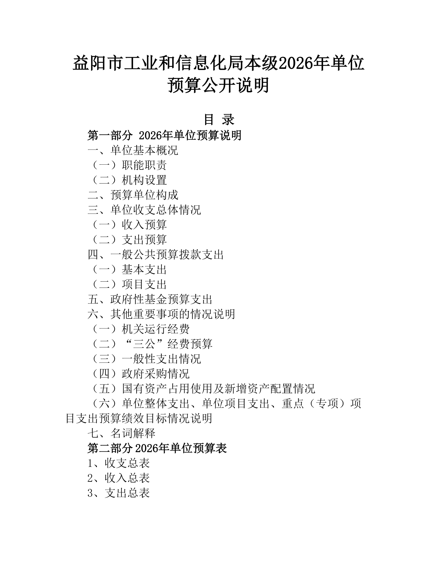 益阳市工业和信息化局本级2026年单位预算公开说明