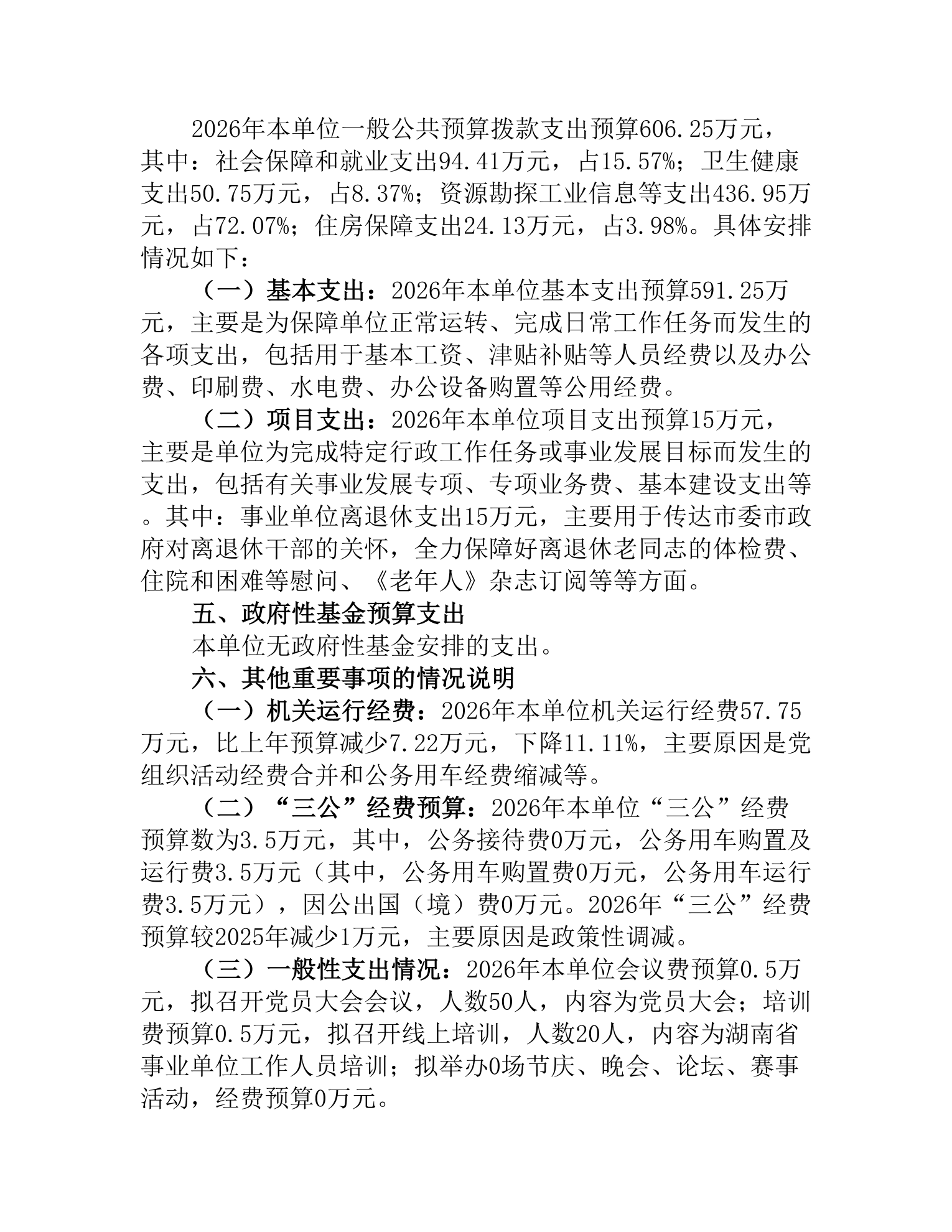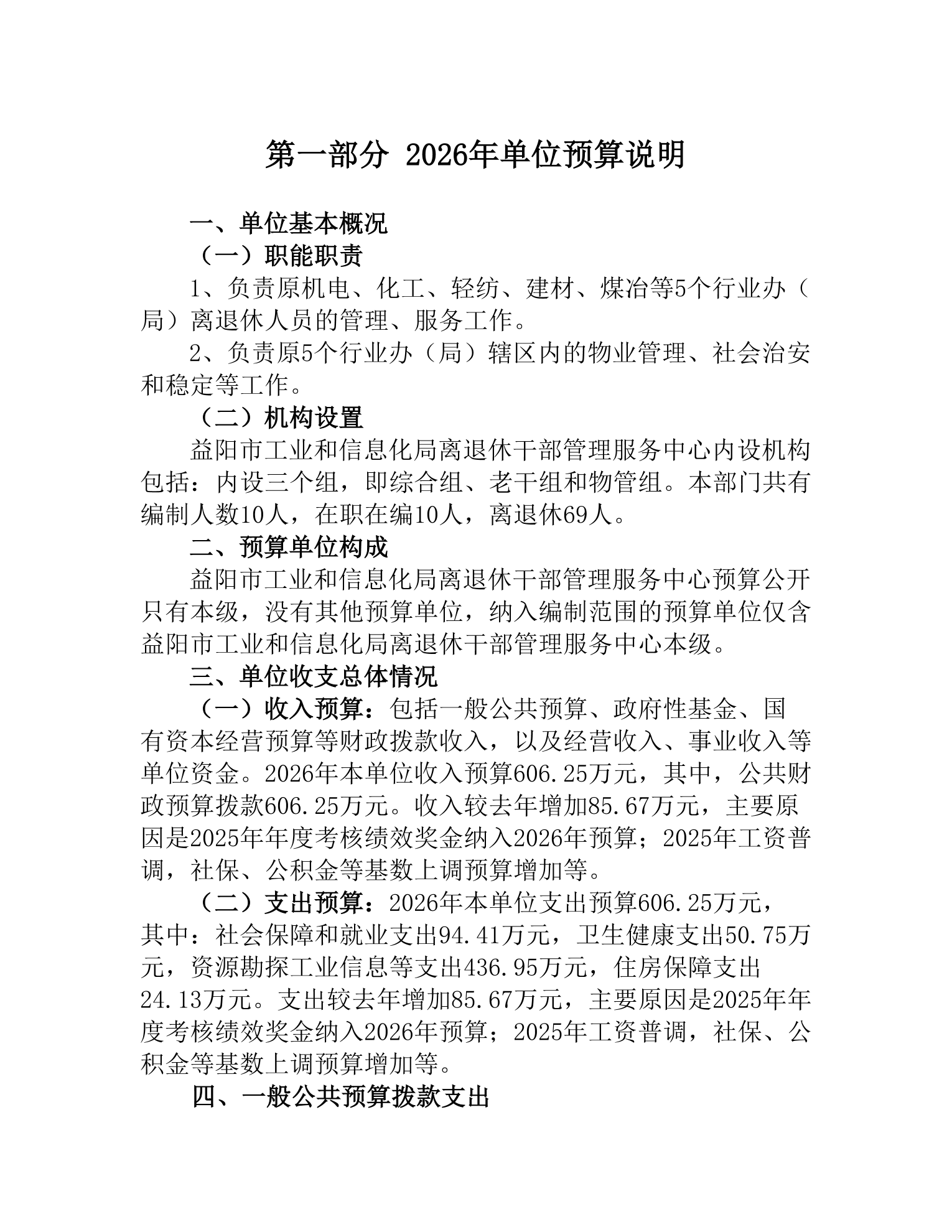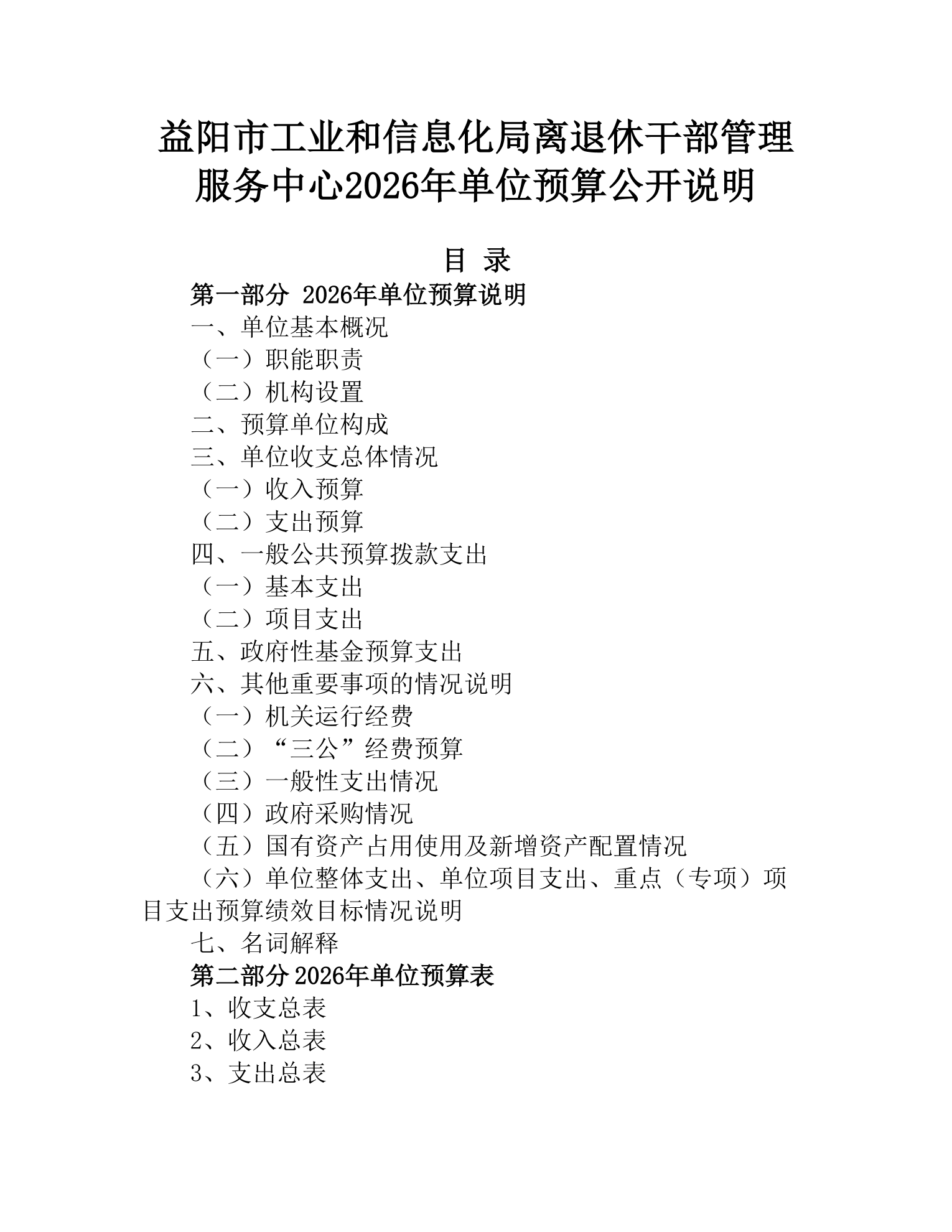 益阳市工业和信息化局离退休干部管理服务中心2026年单位预算公开说明