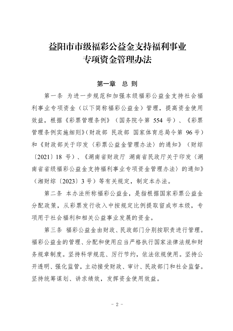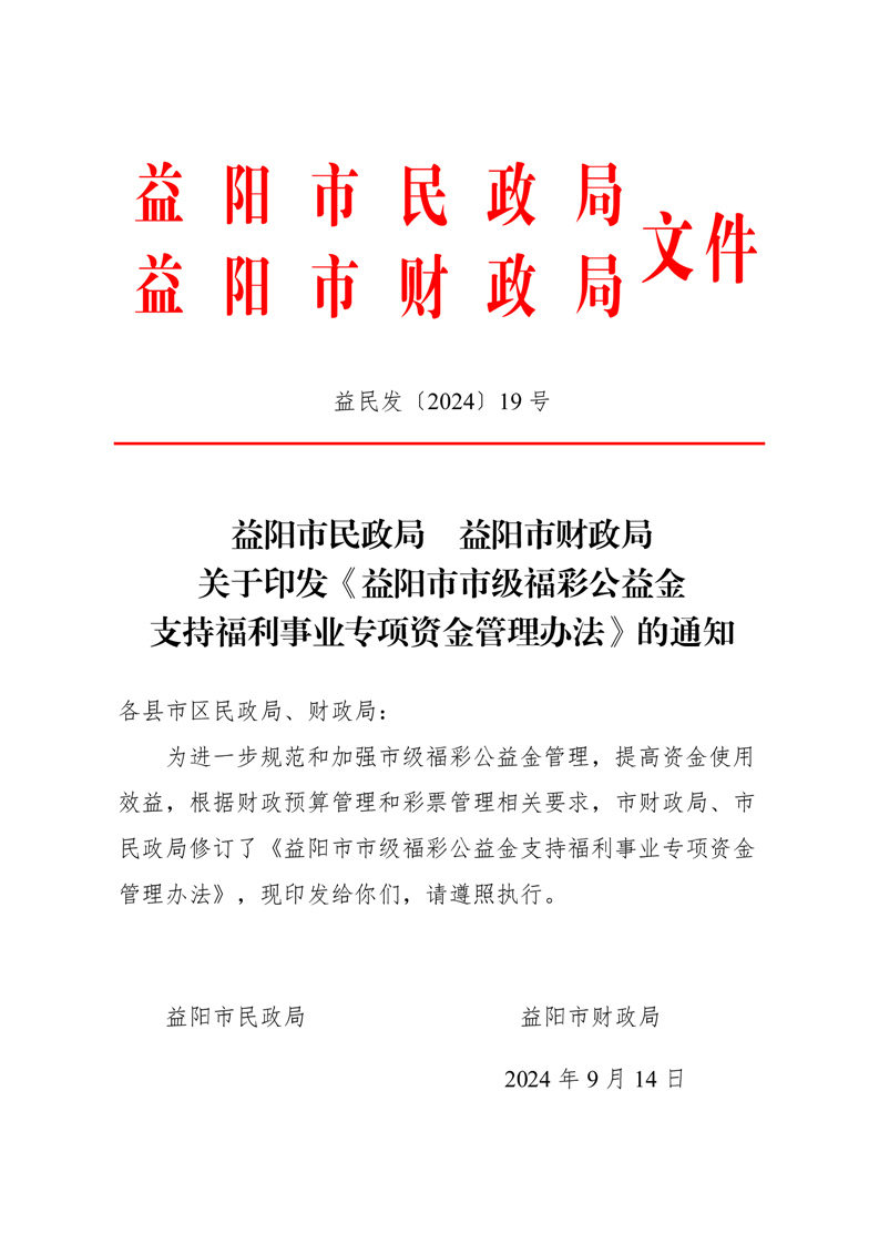益阳市民政局 益阳市财政局 关于印发《益阳市市级福彩公益金 支持福利事业专项资金管理办法》的通知