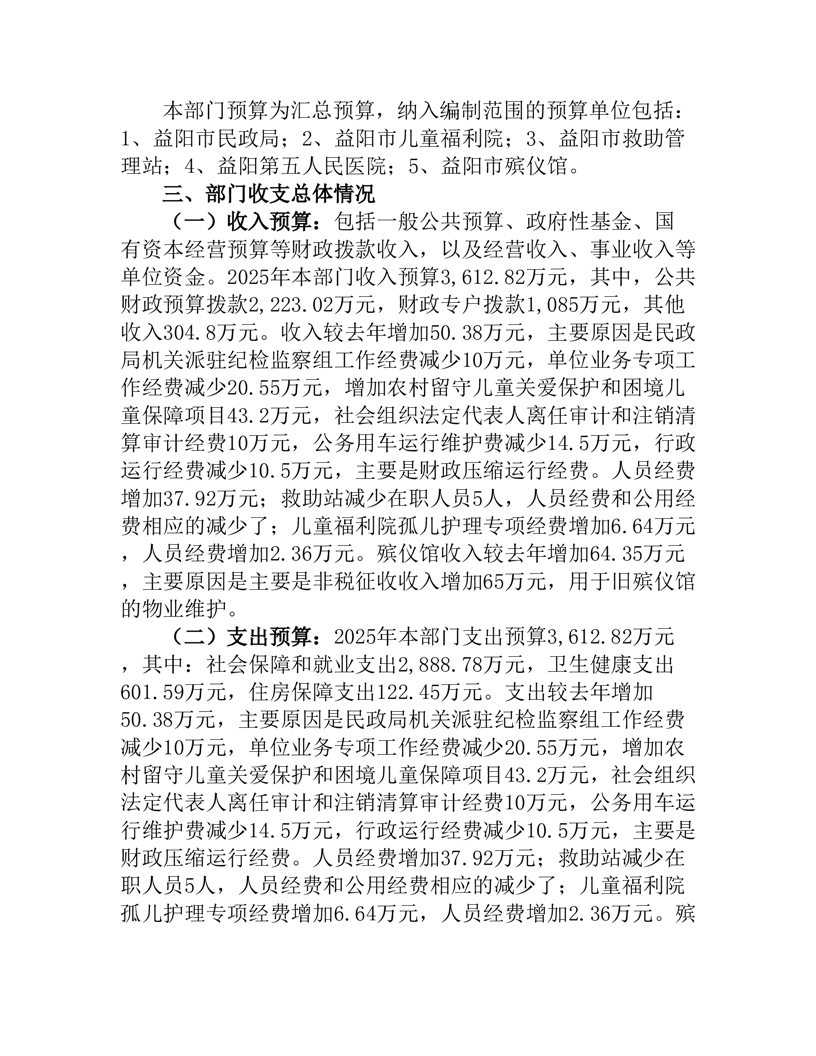 益阳市民政局2025年部门预算公开说明