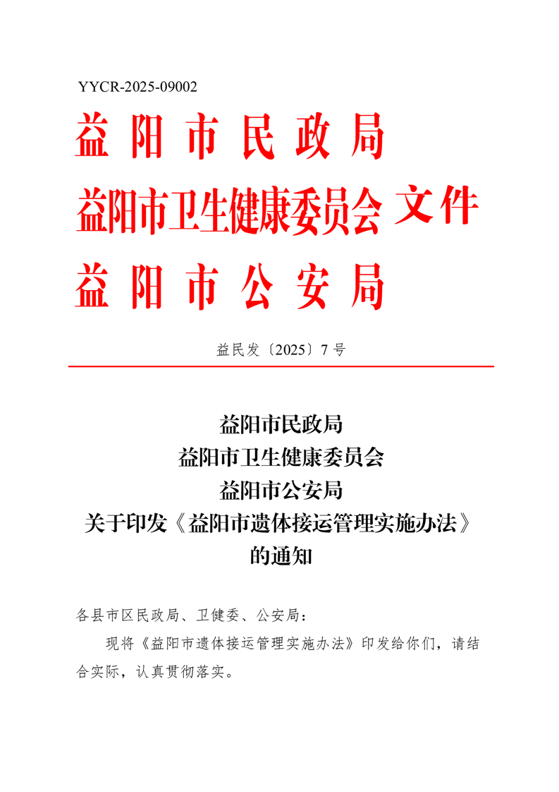 关于印发《益阳市遗体接运管理实施办法》的通知