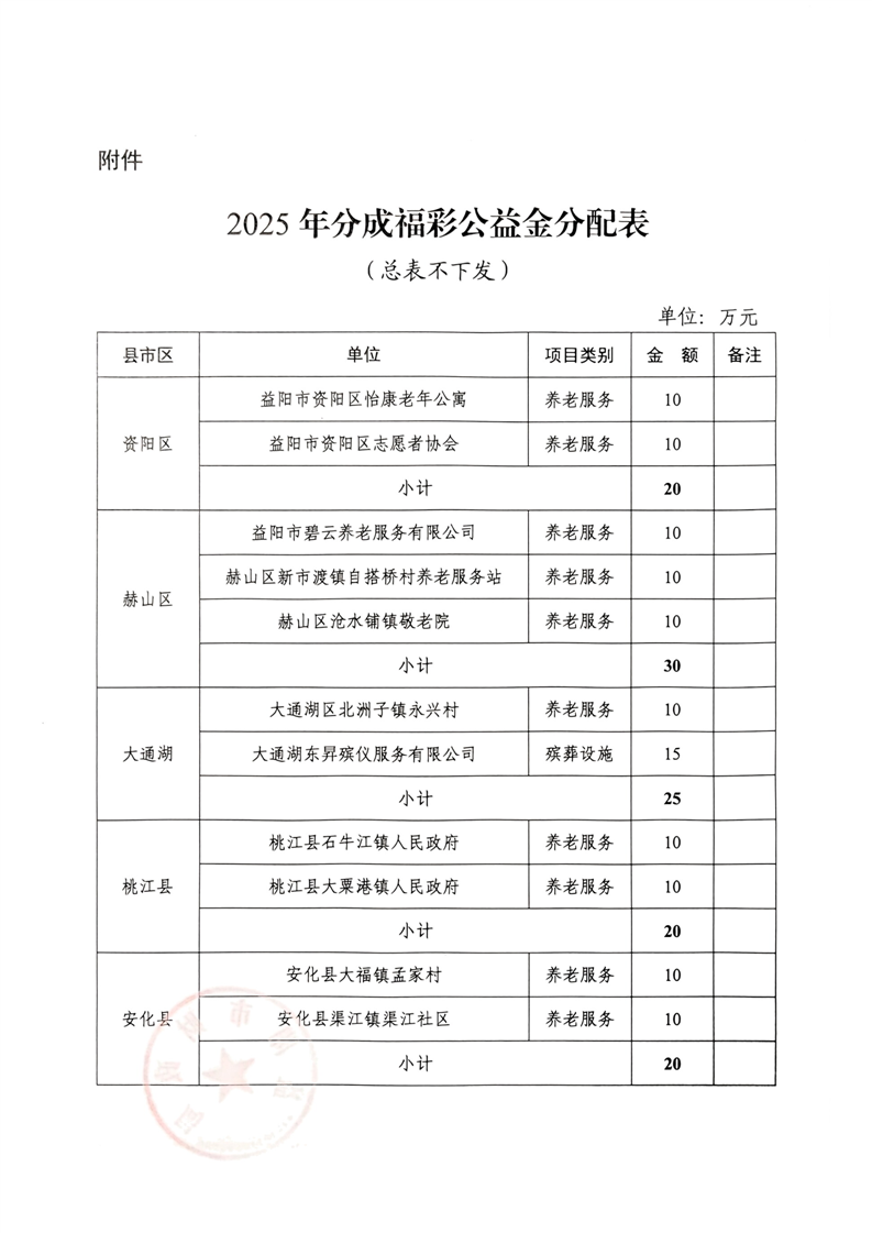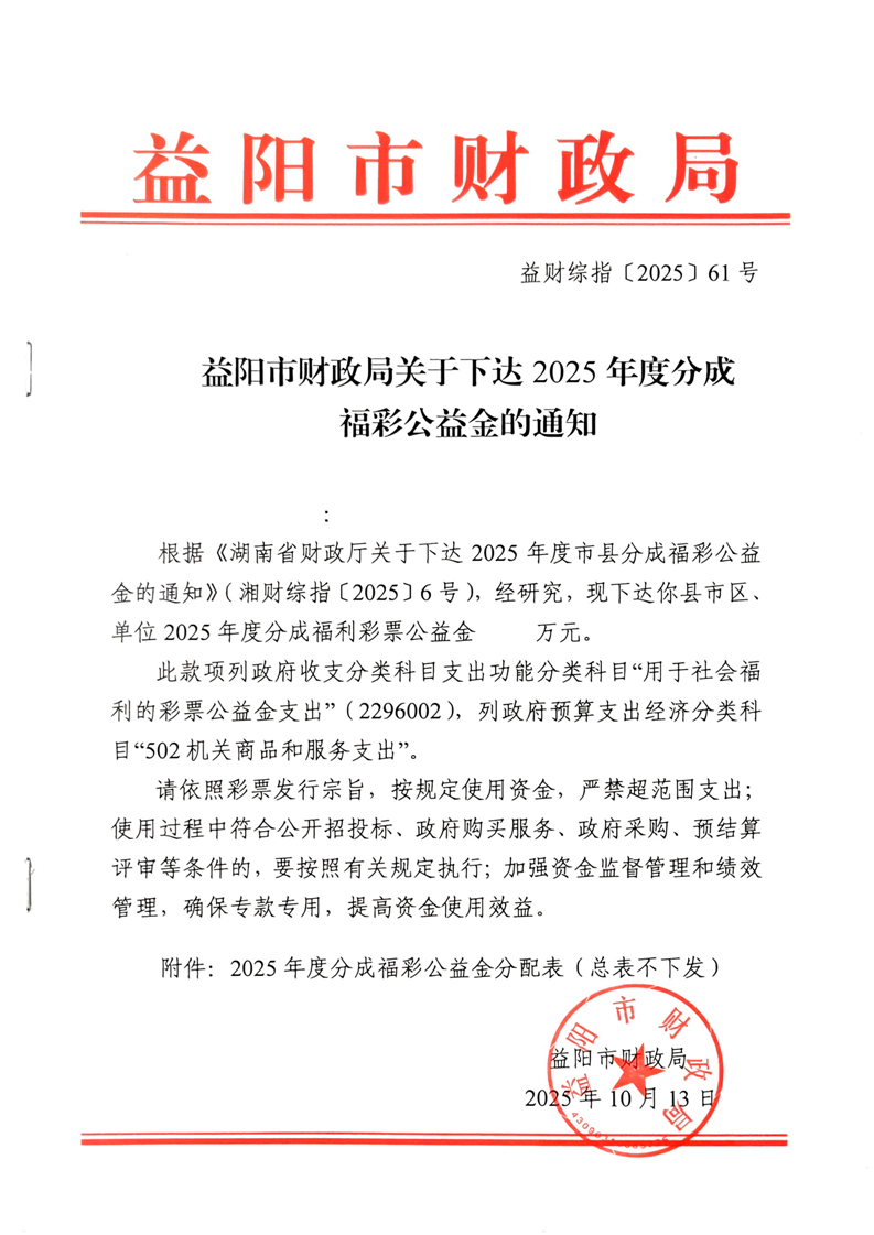 益阳市财政局关于下达2025年度分成福彩公益金的通知1