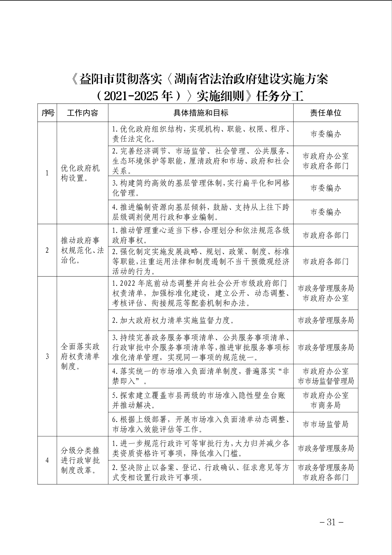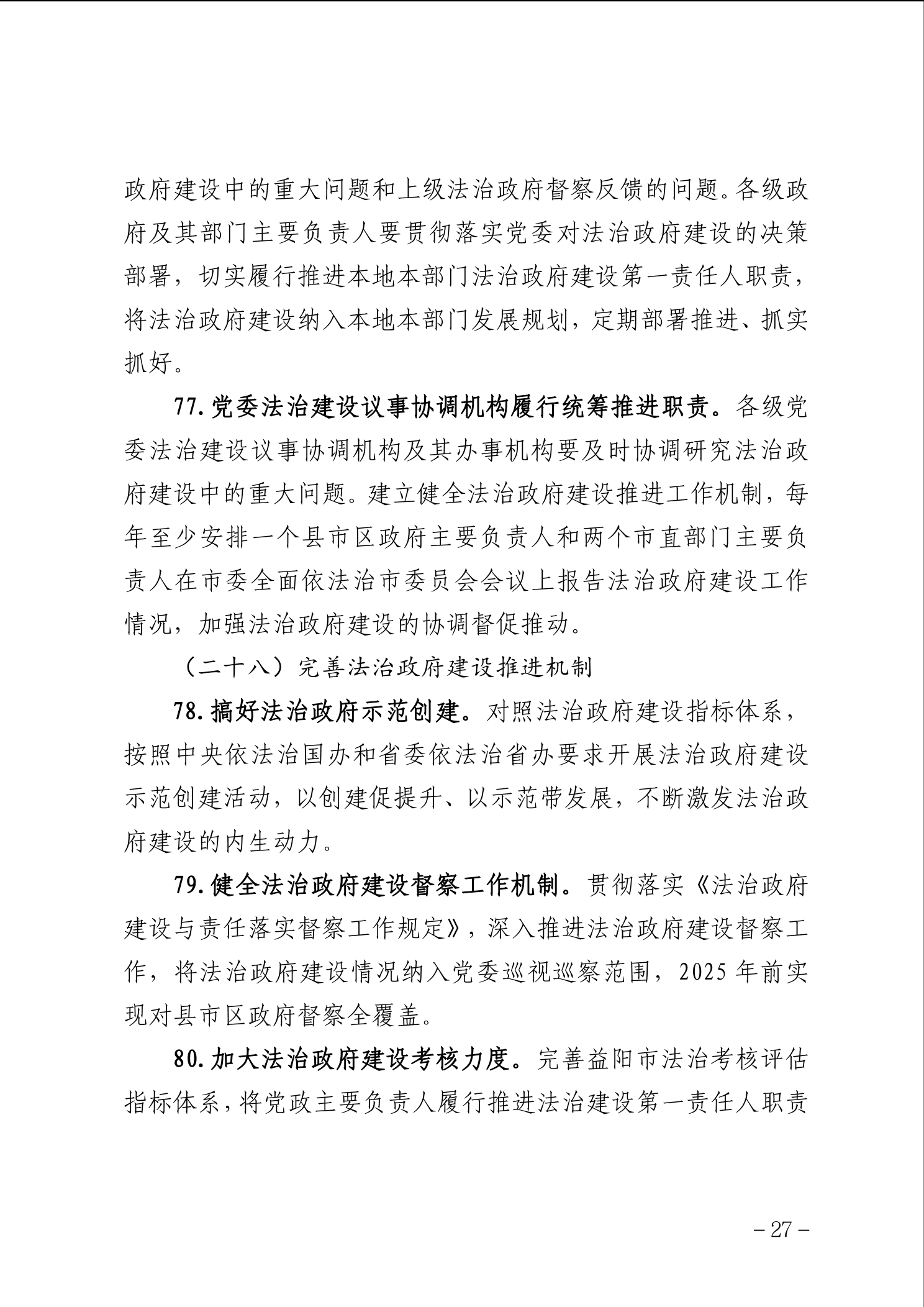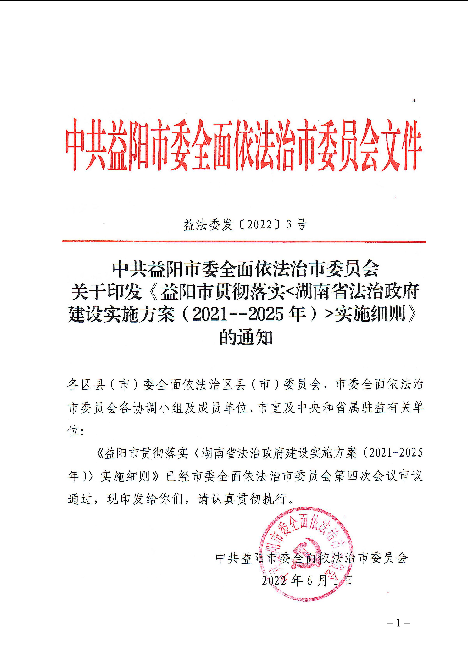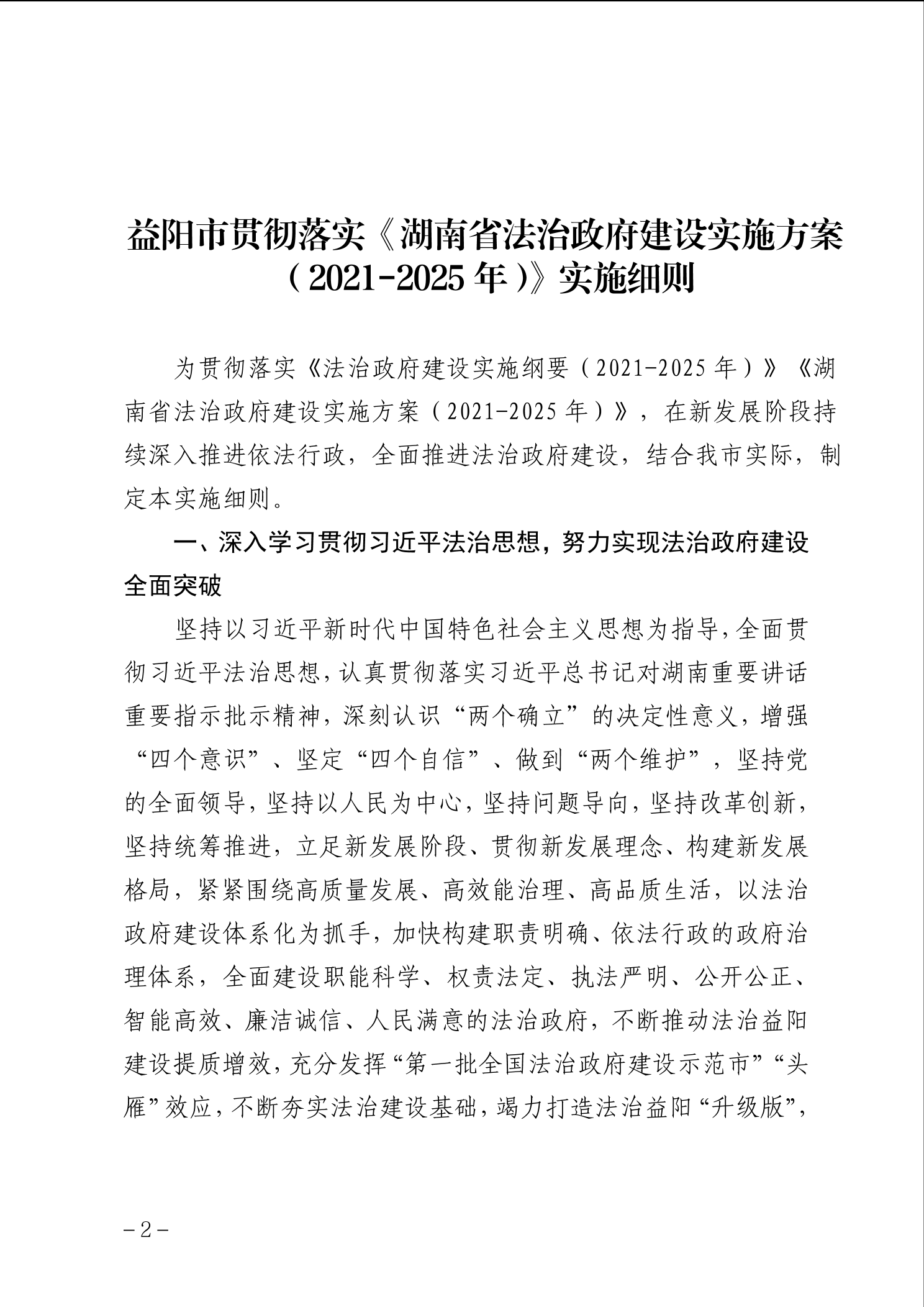 益阳市贯彻落实《湖南省法治政府建设实施方案(2021-2025年)》实施细则