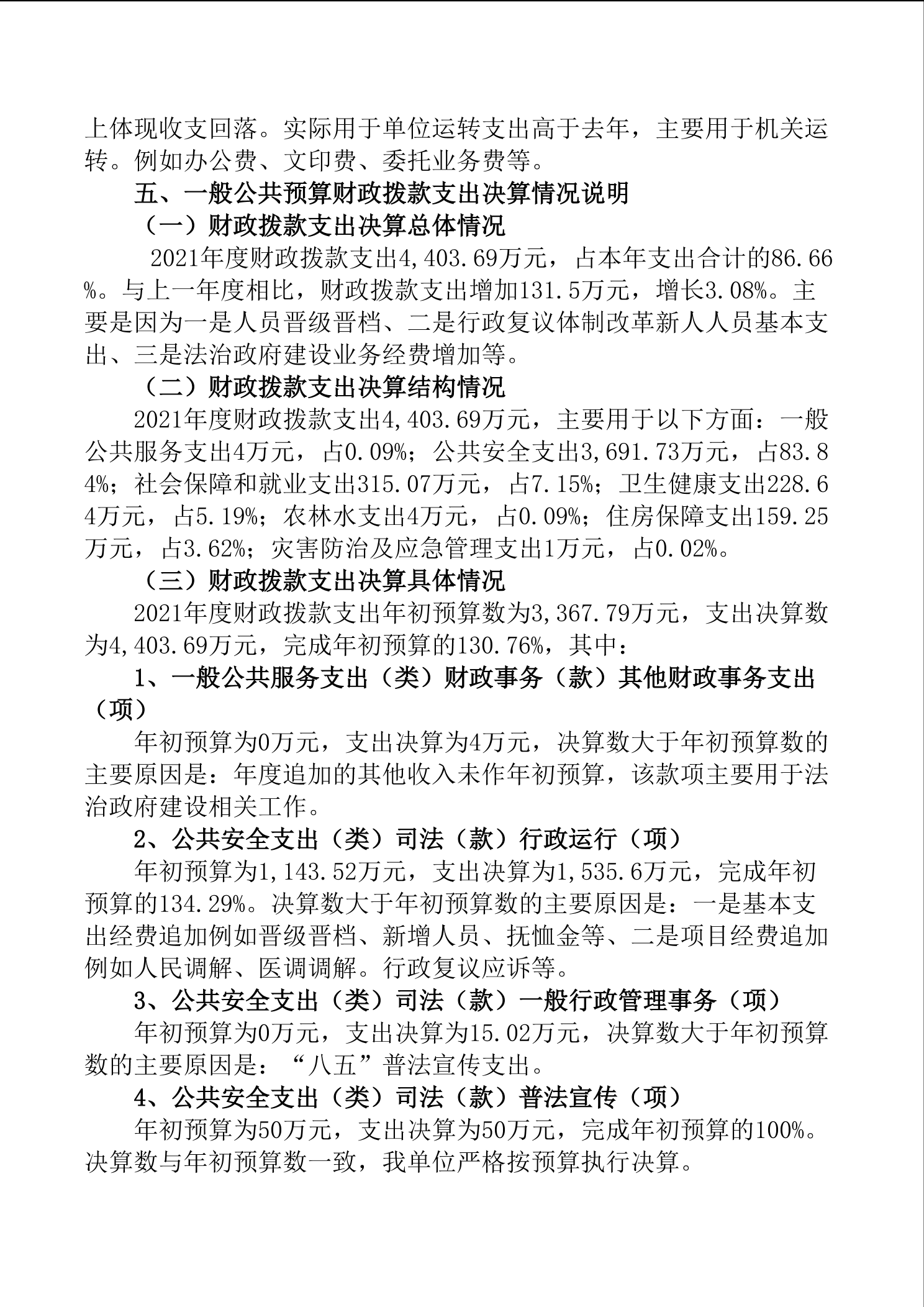 益阳市司法局2021年部门决算公开说明