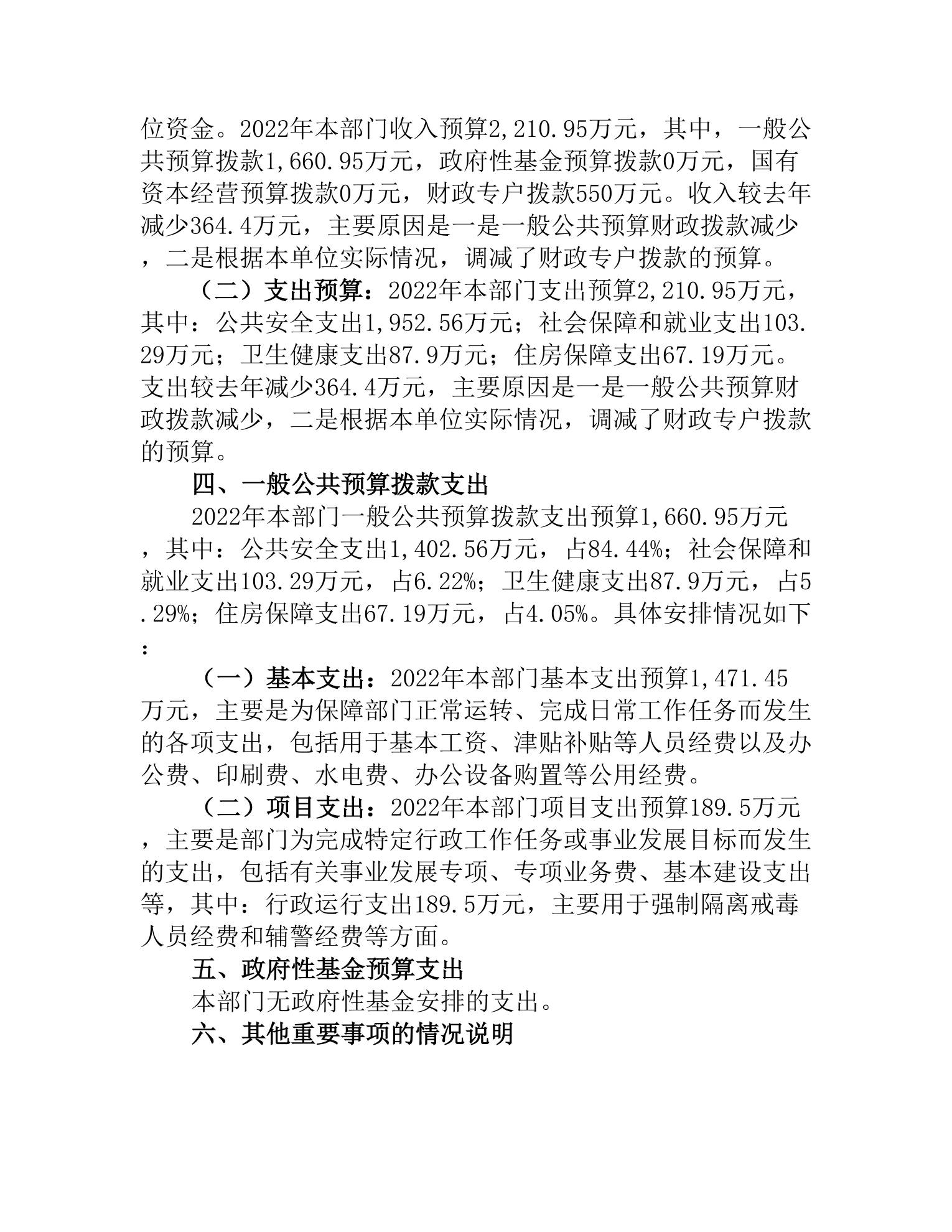 2022年度益阳市强制隔离戒毒所部门预算公开说明