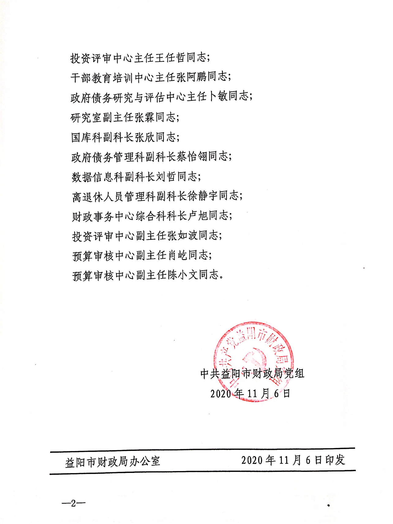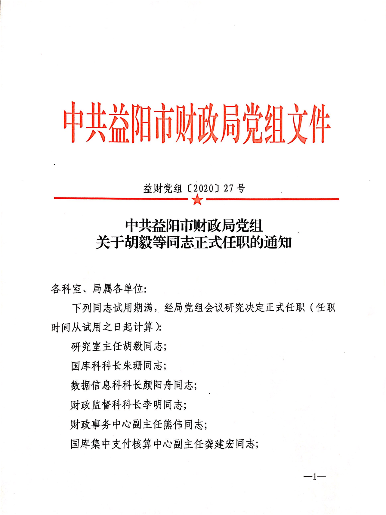 中共益阳市财政局党组关于胡毅等同志正式任职的通知